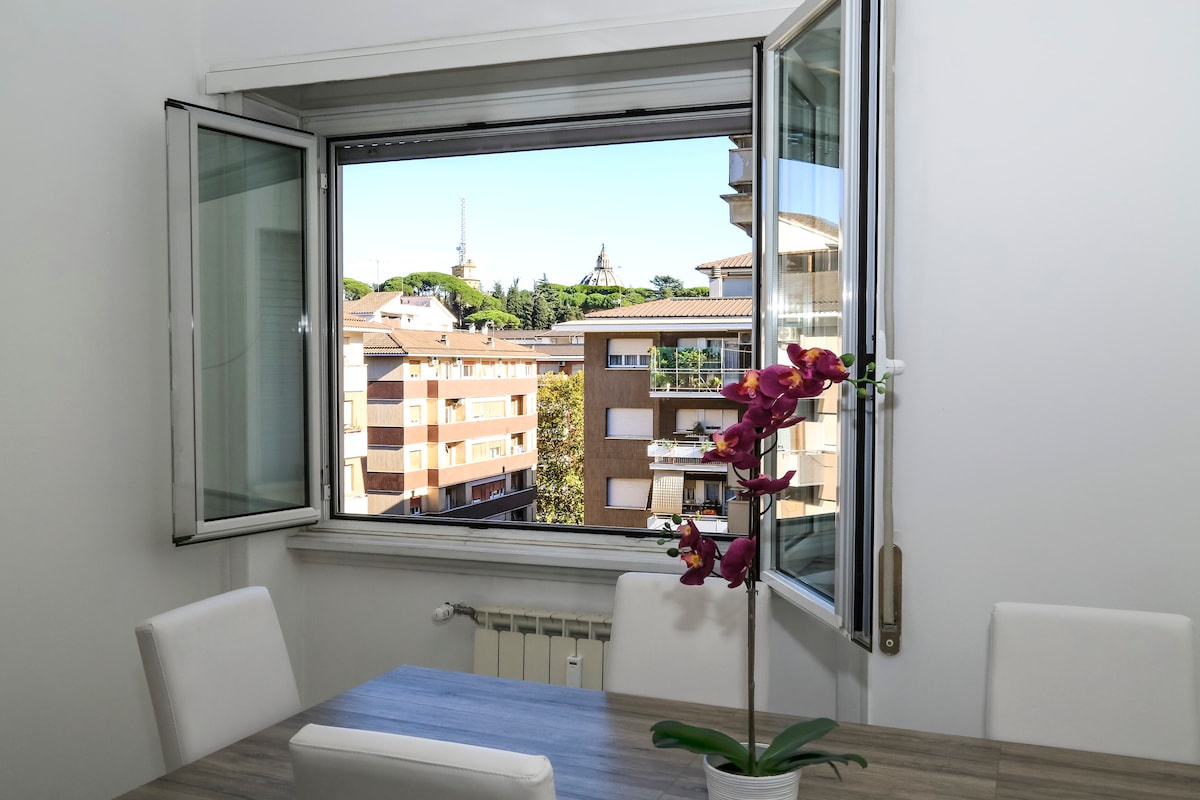 ST PETER'S- VATICAN: We'll welcome you to a centrally located, quiet, bright, and spacious apartment: a spacious living room, a large kitchen equipped for preparing and cooking meals, 24-hour air conditioning/hot water, a washing machine, and free, fast 24-hour Wi-Fi. The reviews speak volumes about our commitment to making your stay authentic and enjoyable. Popular with families with children, groups of friends and business guests, it will be a welcoming space just for you.