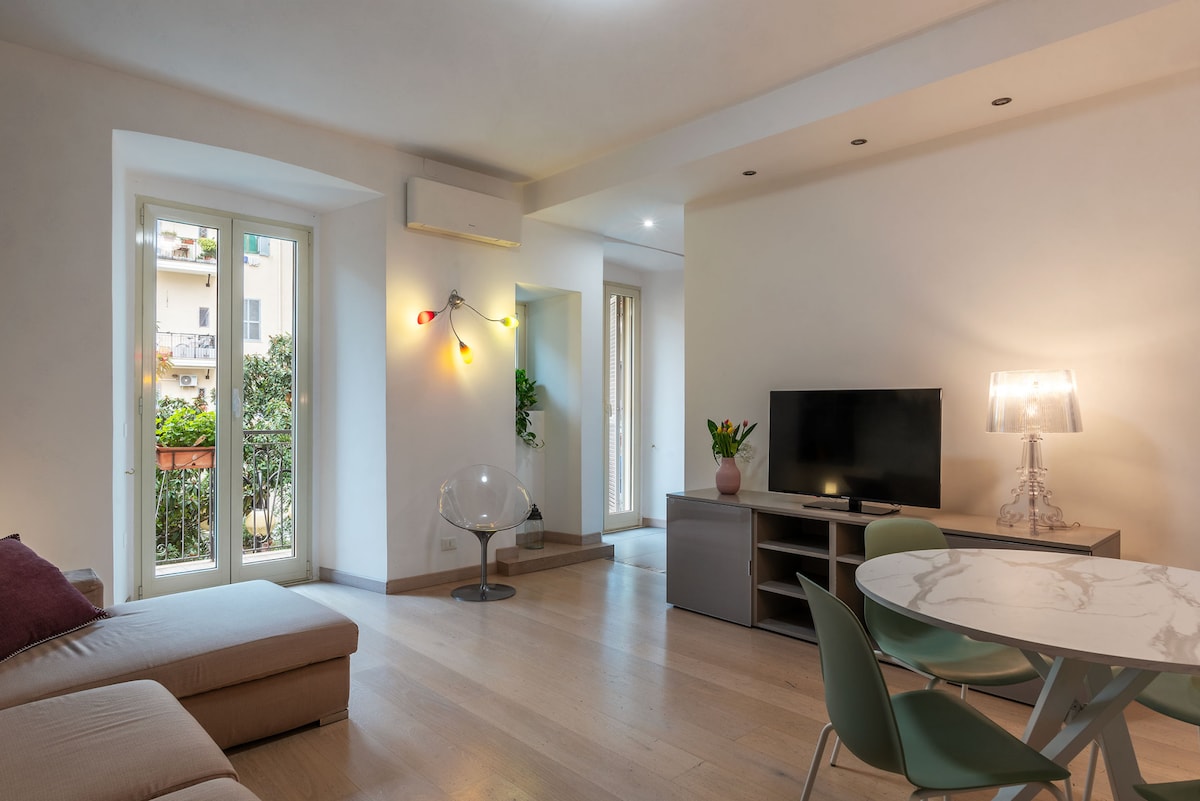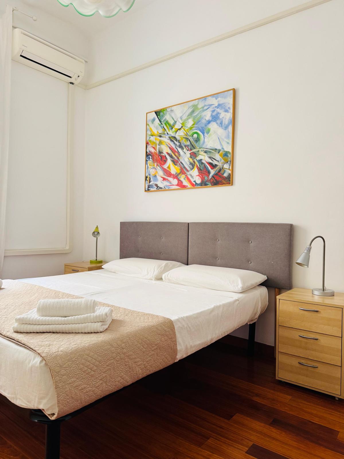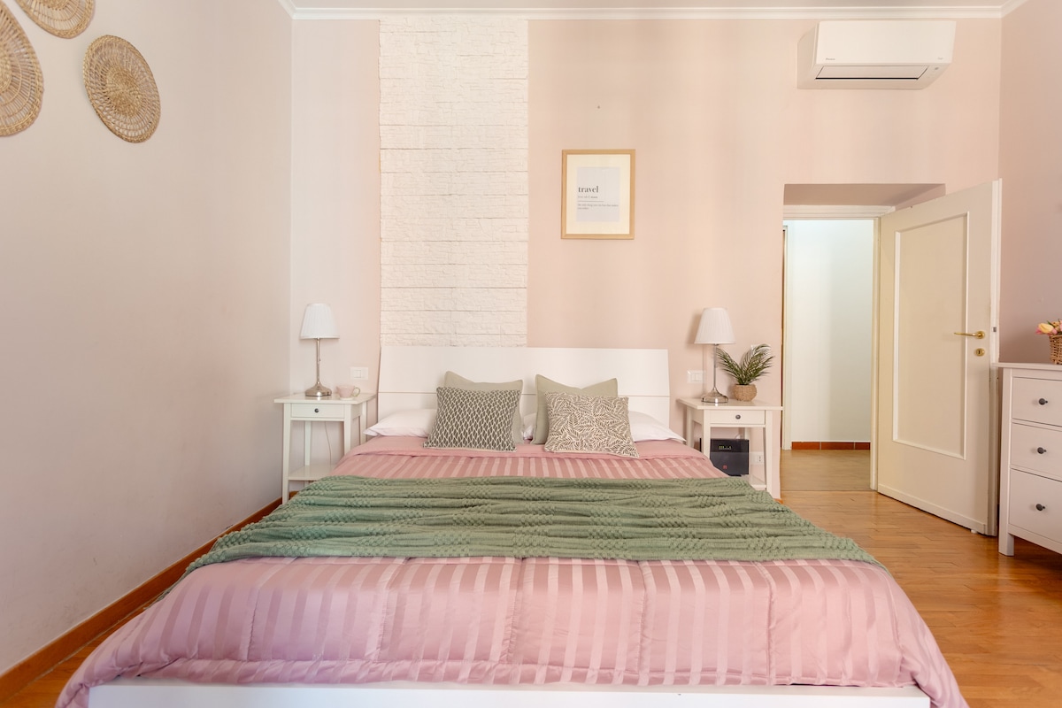 Cozy and modern 90 sm apartment located in the heart of Prati district, 100 m from the entrance of the Vatican Museums and 5 min. walk from Ottaviano Subway station (Metro A) Fully furnished with AC, heating, WI-FI and 4K Smart TV with Netflix and Amazon Prime Video, it can host up to 7 persons (Perfect for Families and group of friends!) It has 2 elegant queen size bedrooms, one of which with additional single bed and equipped kitchen with a double pullout couch and 2 bathrooms with showers.