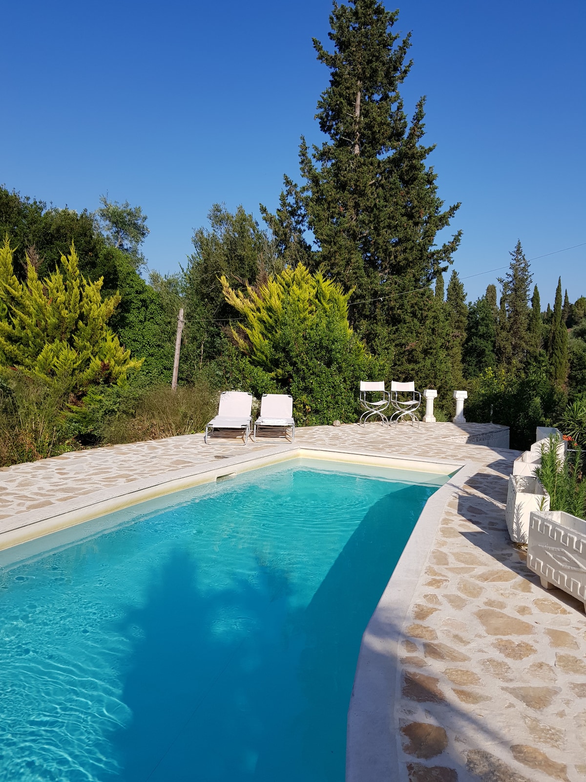 Although this lovely and romantic tree house is set in the woods, it is light and airy with a balcony that overlooks the verdant landscape so typical of Corfu. The detail as well as the tasteful fabrics adds to the ambience. Whilst small it has everything you need. It will enchant you. Please note that this house is not suitable for children under 6 years old.