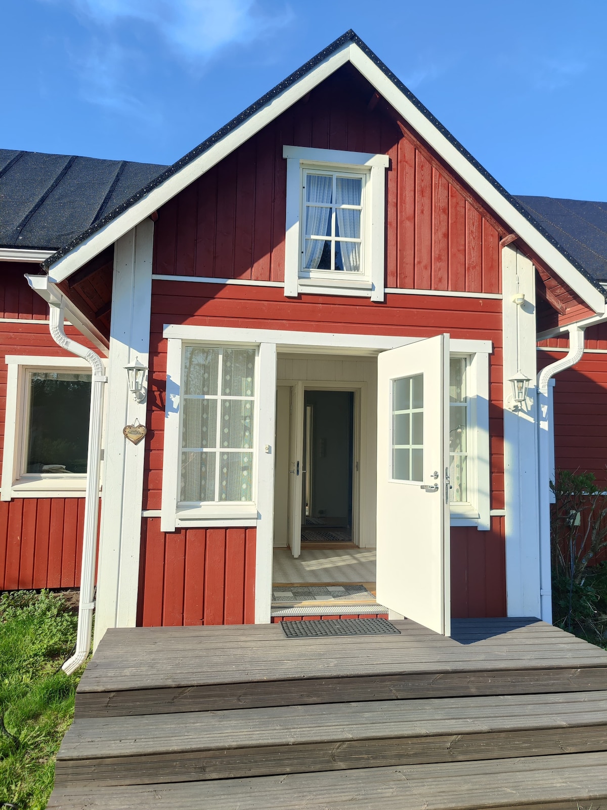 Fridfull villa vid sjön. Yta: 80 m2 inomhus + stor terrass och utebastu Antal bäddplatser är 6 separata sängar. Rum: Kök, vardagsrum, 3 sovrum, hall, badrum +bastu Faciliteter: öppen spis, kylskåp/frys, elektrisk spis och ugn, diskmaskin,microvågsugn, kaffebryggare, vattenkokare. På gården finns ytterligare en strandbastu.