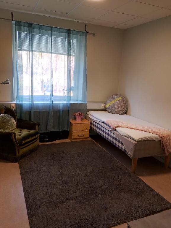 Upplev Mullsjö med fantastiska omgivningar och fin natur. Central källarvåning med närhet till vandringsleder, sjöar för fiske, 18 håls golfbana, skogar för bär och svampplockning. Sovrum med 2 sängar, extrasäng. Allrum med TV, stor soffa. Matlagning är inte möjligt (inget funktionellt kök), kylskåp, micro, kaffebryggare, vattenkokare finns. Egen entré. Billigt boende där du väljer om du vill ta med egna sängkläder eller hyra 100kr/set. Städning ingår ej men går att boka mot extra avgift.