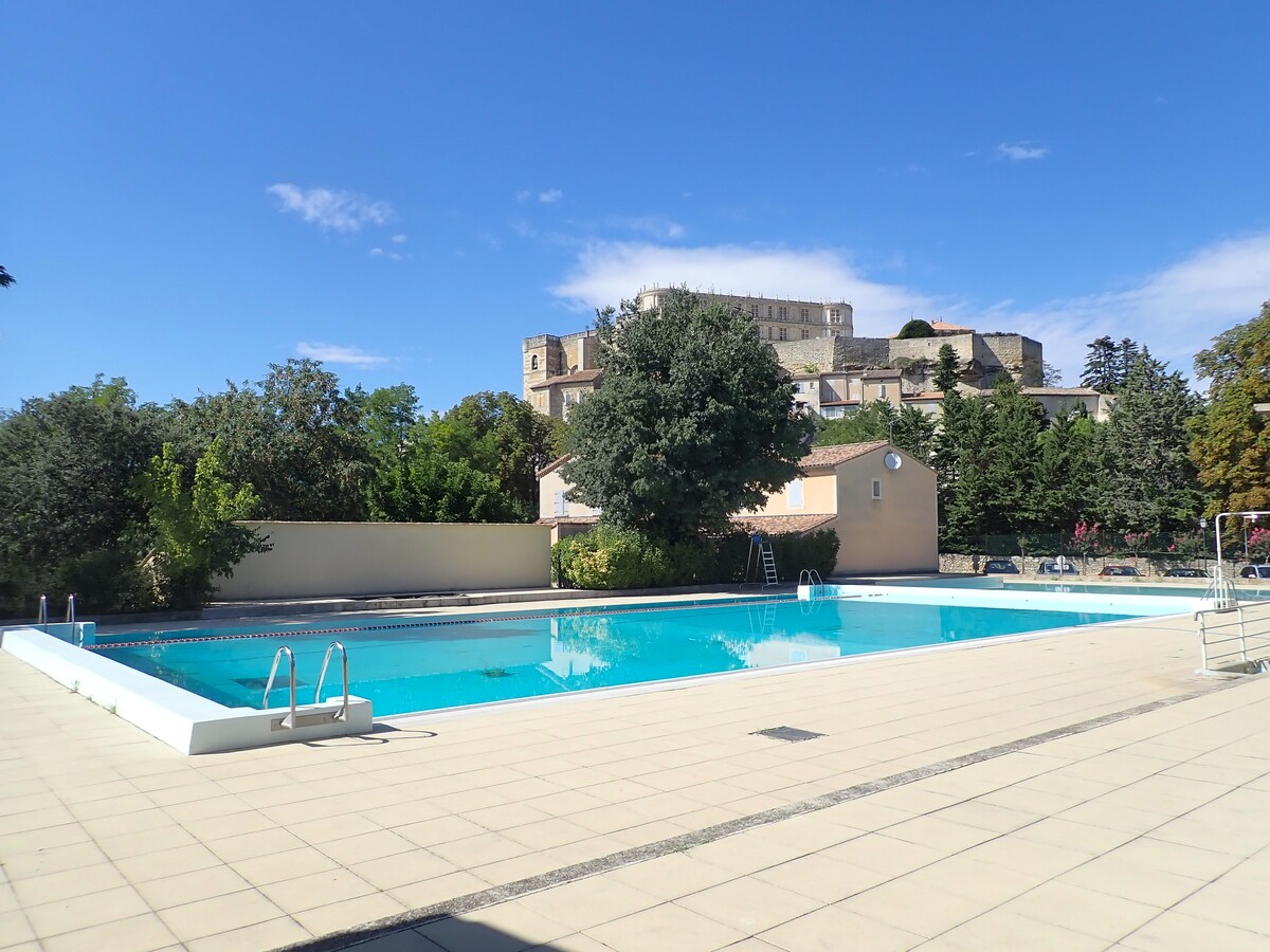 -In the ramparts of Grignan In the heart of the Drôme Provençale at the foot of the castle, ideally located -For rent Elegant charming house, air conditioning, quiet luxury and relaxation Old tower in the town centre, renovated by architect - PANORAMIC VIEW of lavender fields, vineyards and keep of Chamaret, truffle oaks and olive trees -Summer kitchen with exceptional view plancha, 2 bedrooms, 2 walk-in showers, SPA in vaulted cellar, separate garden