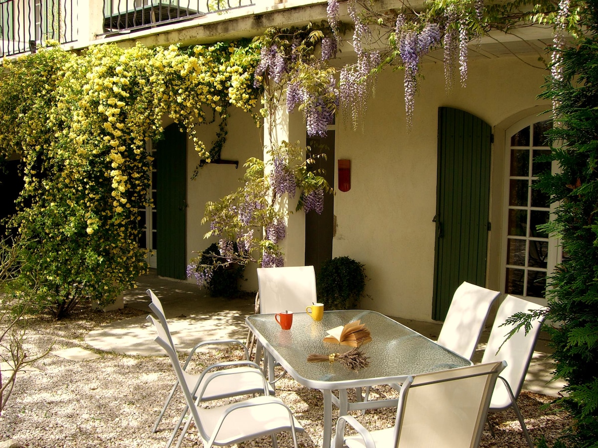 Your authentic South of France experience in a 150 year old stone cabin nestled amongst sunny greens and remodeled with modern conveniences. Just 2 km from Avignon's lively city-center, it offers the best of both worlds. It's a quiet retreat for recharging from the exciting buzz and culture all around. Peace and tranquility! A quick 13 min bike ride along the river. Perfect for couples on romantic getaways, families, travelers. Ideal base for exploring the best of Provence. Nearby farm markets.