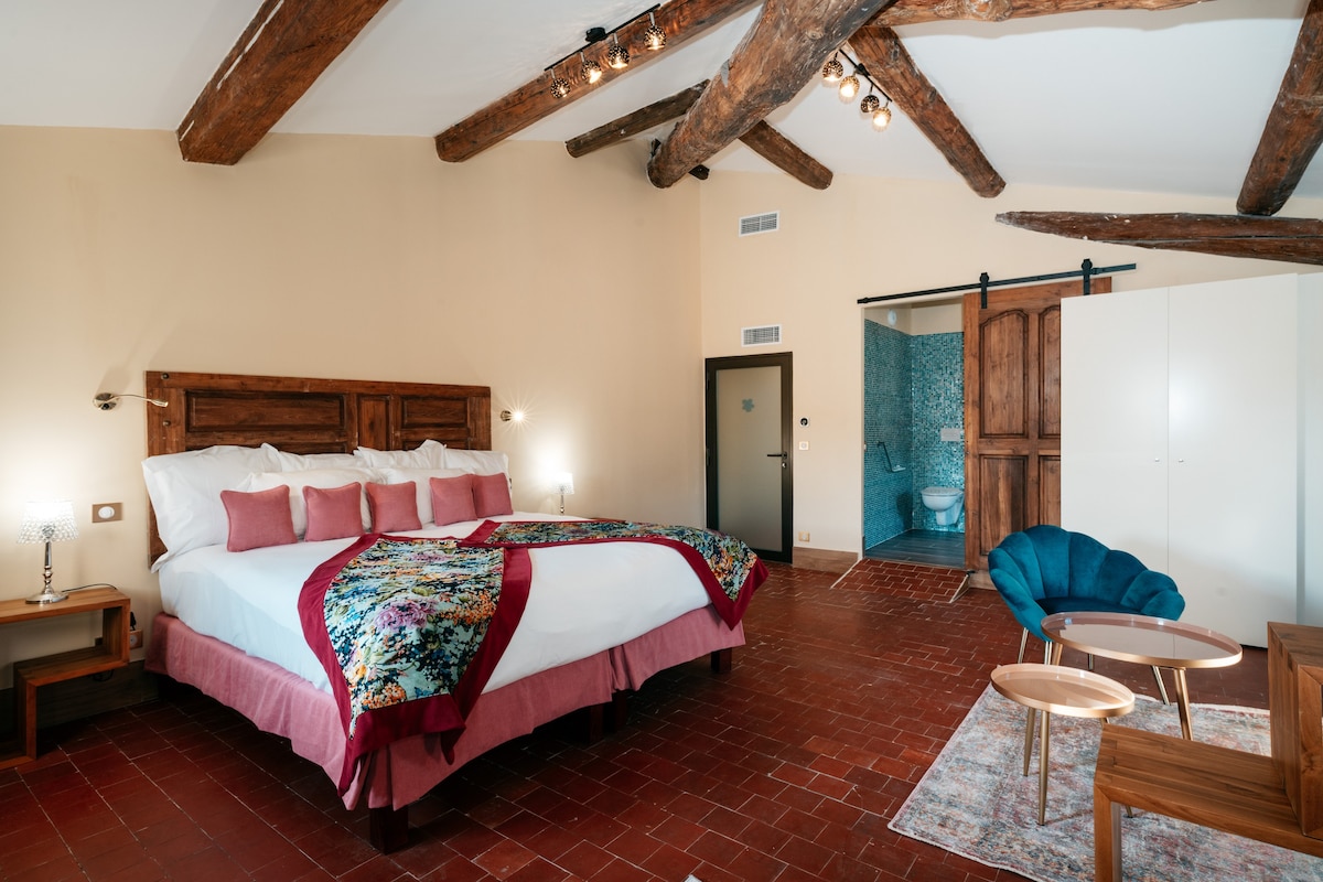 The Villa’s Classic 18sqm Rooms are the perfect cocoon for your weekend in Drôme Provençale. Brightly lit, decorated in soft hues and overlooking the superb park or patio. Each room has its own decor, its own universe, but what they all have in common is an atmosphere conducive to relaxation and well-being. Your stay alternates between moments of rest in your room, swimming in the outdoor pool, strolling in our park and discovering the treasures of our region.