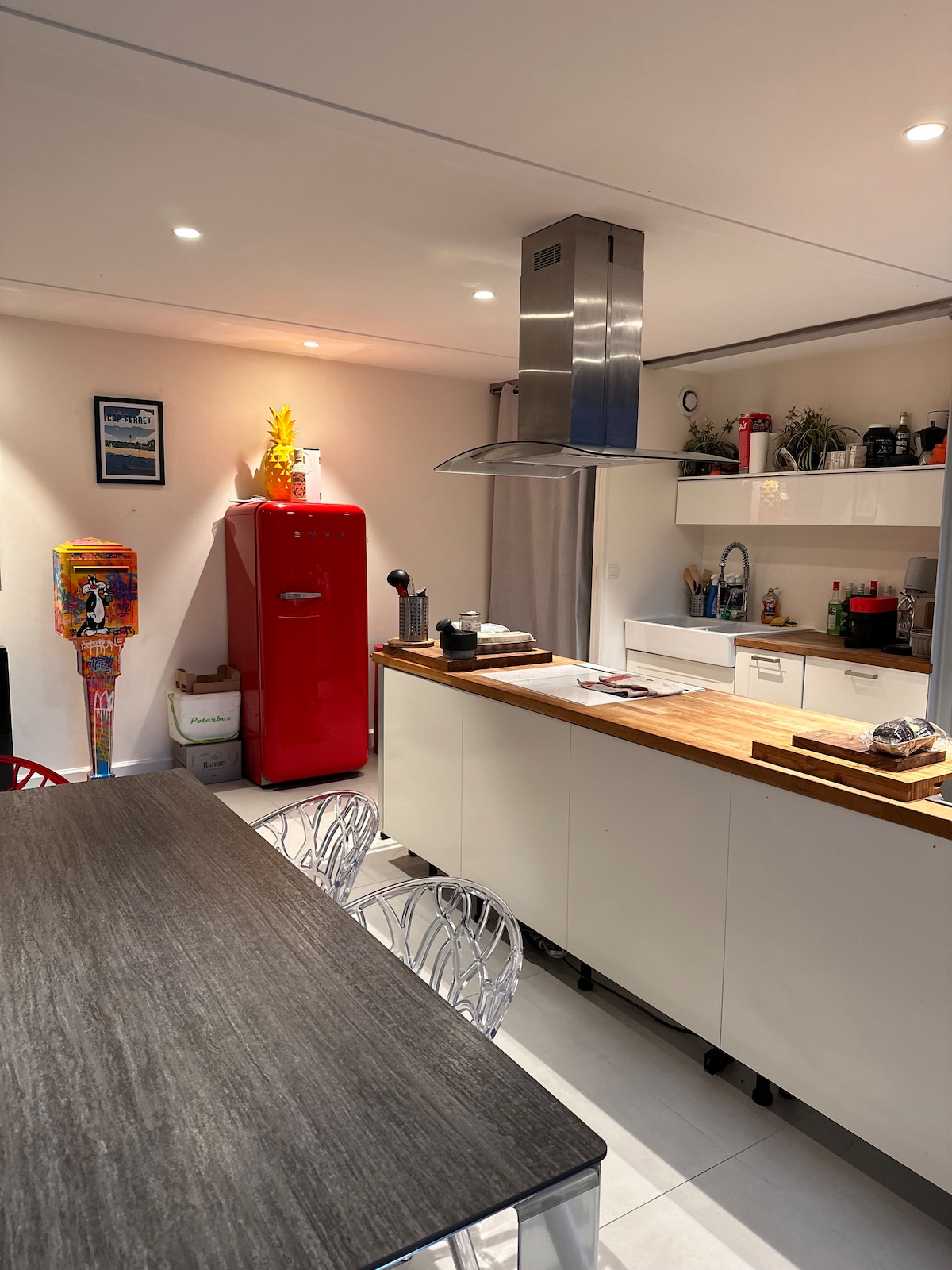 Le loft design indépendant de 100 M2 s’ouvre sur un grand espace de vie composé d’un salon, d’une cuisine ouverte et salle de bains au rez-de -chaussée et d’une mezzanine à l’étage. Le salon possède un grand canapé en cuir , un fauteuil et une télévision écran plat. La cuisine ouverte est entièrement équipée avec îlot central. La salle de bain est dotée d'une douche à l’italienne, double vasque, machine à laver et WC. Les deux chambres disposent d' un lit en 160 et d'une penderie.