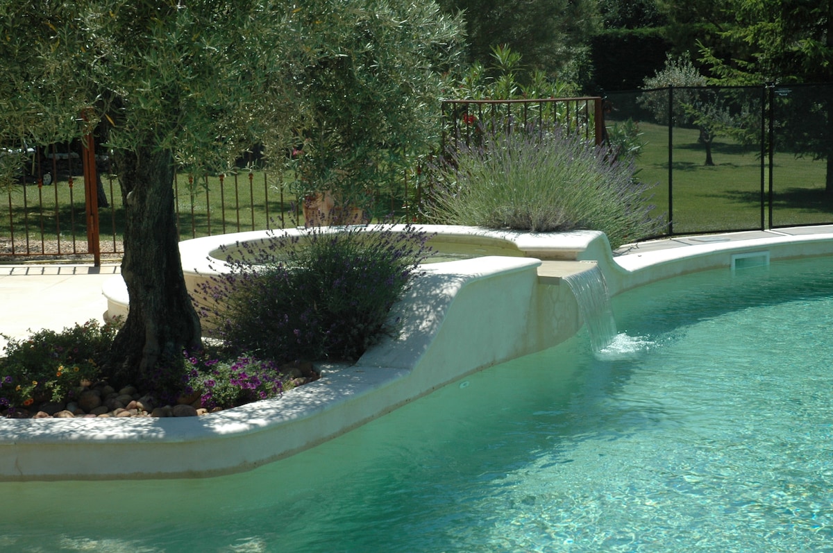 The Villa sings cuckoo, in the heart of the scrubland of "Fontaine de Vaucluse", overlooking the village, facing an exceptional landscape, Marco welcomes you between pine trees and gentle breeze of Provence... Come and discover the picturesque village nestled at the foot of impressive rock cliffs. A Moorish type residence. A discreet murmur of water encourages you to relax in one of the two swimming pools, beside which Marco welcomes you for hearty breakfasts.