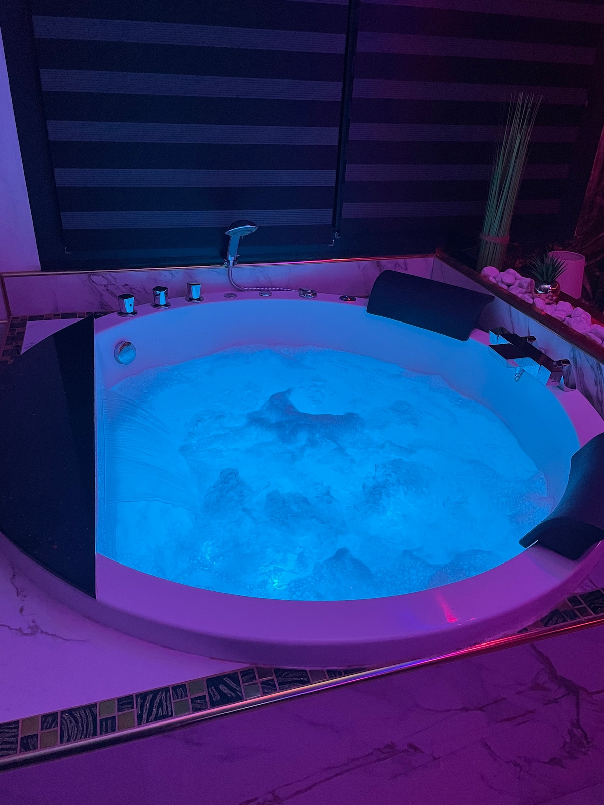 Un havre de romance et de détente pour les amoureux! Notre logement propose une escapade idyllique avec piscine privée, un jacuzzi et un sauna pour des moments de pure relaxation. La cuisine équipée vous permettra de cuisiner des repas délicieux, tandis que la salle de bain luxueuse et le lit 180x200 vous offrirons un confort ultime. Profitez des divertissements avec Netflix et Spotify, rechargez votre véhicule avec notre borne électrique. Commencez la journée avec le petit déjeuner complet.