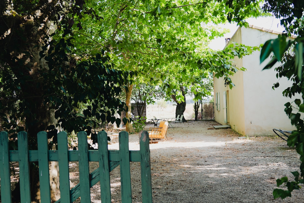 Nous avons eu à cœur de mêler convivialité mais aussi intimité Grande Famille ? Groupe d'amis ? Nous proposons également 4 autres logements. ➜ EN PLEINE CAMPAGNE. 1 hectare 1/2 de terrain. Ce mazet (petit mas) est totalement indépendant avec jardin privatif et clos. La journée, vous pourrez profiter de la piscine et de son bed légendaire. Le soir, vous sortirez votre bonne bouteille de vin et direction le terrain de pétanque pour une bonne partie avec vue sur le Mont Ventoux.