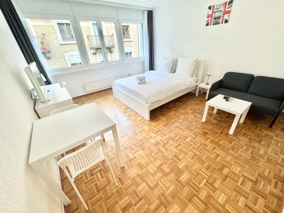 Nice studio just a few meters from the lake, on the 3rd floor with elevator. Located in the lively Eaux-Vives district. Includes a queen-size bed, kitchenette, fast Wi-Fi, smart TV, and all essentials for a comfortable stay. Self check-in available.