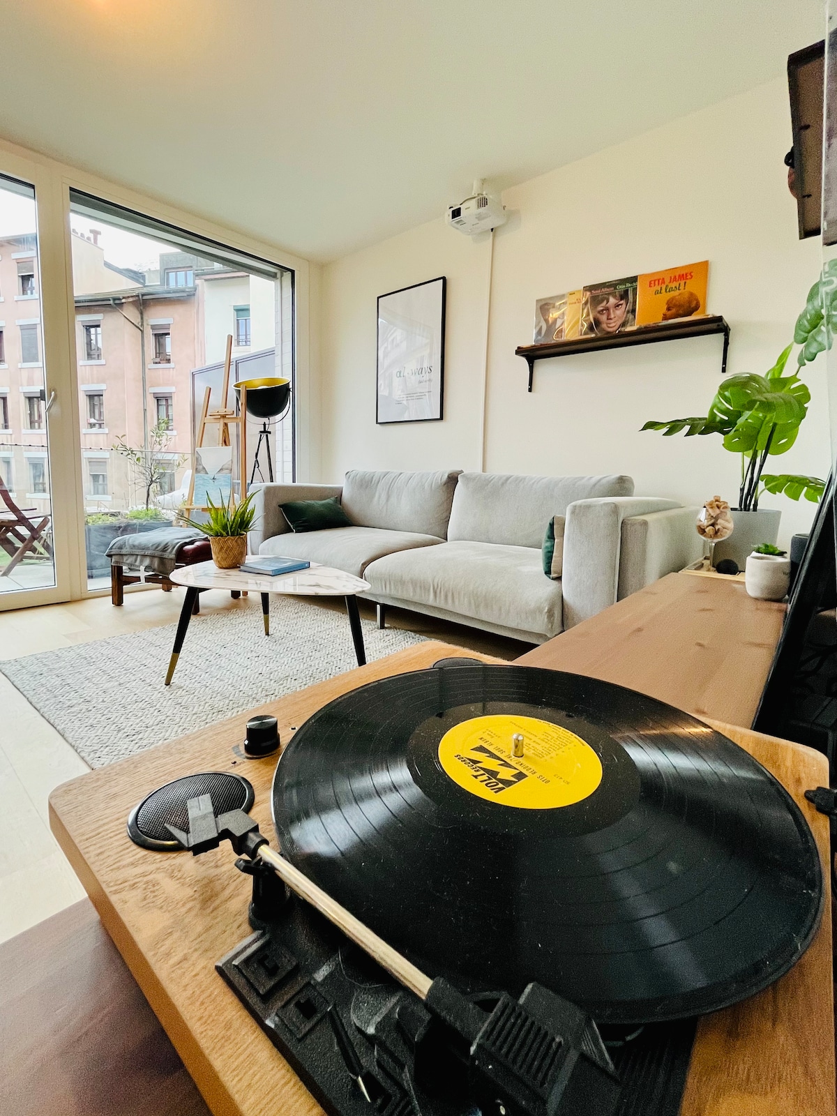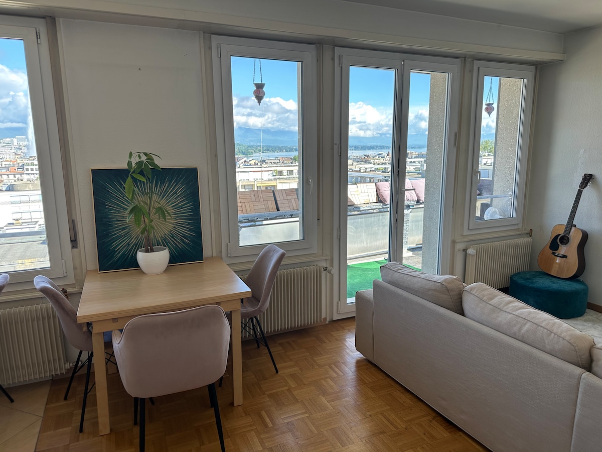 Spacious 1-bedroom apartment within walking distance from Train Station & Old Town (10-15 min) Geneva Airport is 10 min by car or 15 min by bus 10.min by car or 15 by bus from UN and other Orgs Quite neighborhood with grocery stores, restaurants, cafe and bars at your door King size bed in bedroom and convertible sofa with matrass in the living room. Adjustable office desk & fiber internet. Piano, Guitar and Record player. Washing machine & Fully equipped kitchen. Amazing views on Swiss Alps
