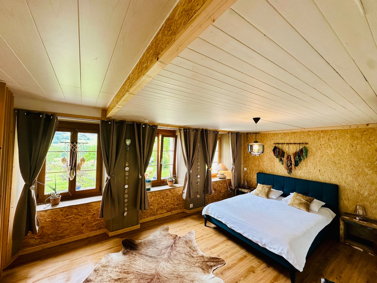 Come and relax in our cosy and loving studio. This typical little Swiss wooden "chalet" crossed our path a couple of years ago, and we took on the task to rebuild it completely in traditional "Gruyere" mountain fashion, adding a volume to it to have the space for an osteopathy practice and this studio. We wanted to create a space where we could offer what we love about living here: recharging in balance with nature and stillness. Comfortably fits 2 adults and 1-2 children.