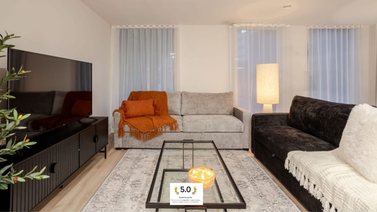 🛏️ Sleep Like a Dream – Plush queen-sized bed with hotel-quality linens. Rest easy after exploring Montreal. 📺 Netflix & Chill Ready – Smart TV with streaming apps. 🚿 Modern & Spotless Bathroom – 🍳 Fully Equipped Kitchen – Save $$ on dining out! Cook like a pro with all the essentials. 🚗 RARE FIND: FREE Parking! –Park for FREE. 🚀 Work & Play – High-speed WiFi + dedicated workspace for digital nomads. ✅ 14 mins to Downtown Montreal – Perfect for concerts, festivals, nightlife!