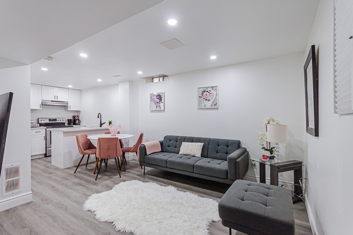 A walk-out basement apartment in Richmond Hill. This sunlit apartment has abundance of natural lighting streaming through the many large windows. It has a full kitchen, a full laundry room with a washer and dryer, a designated parking space for one car, and free Wi-Fi access. Perfect for couples or small families, this apartment comfortably accommodates two adults and up to two children.