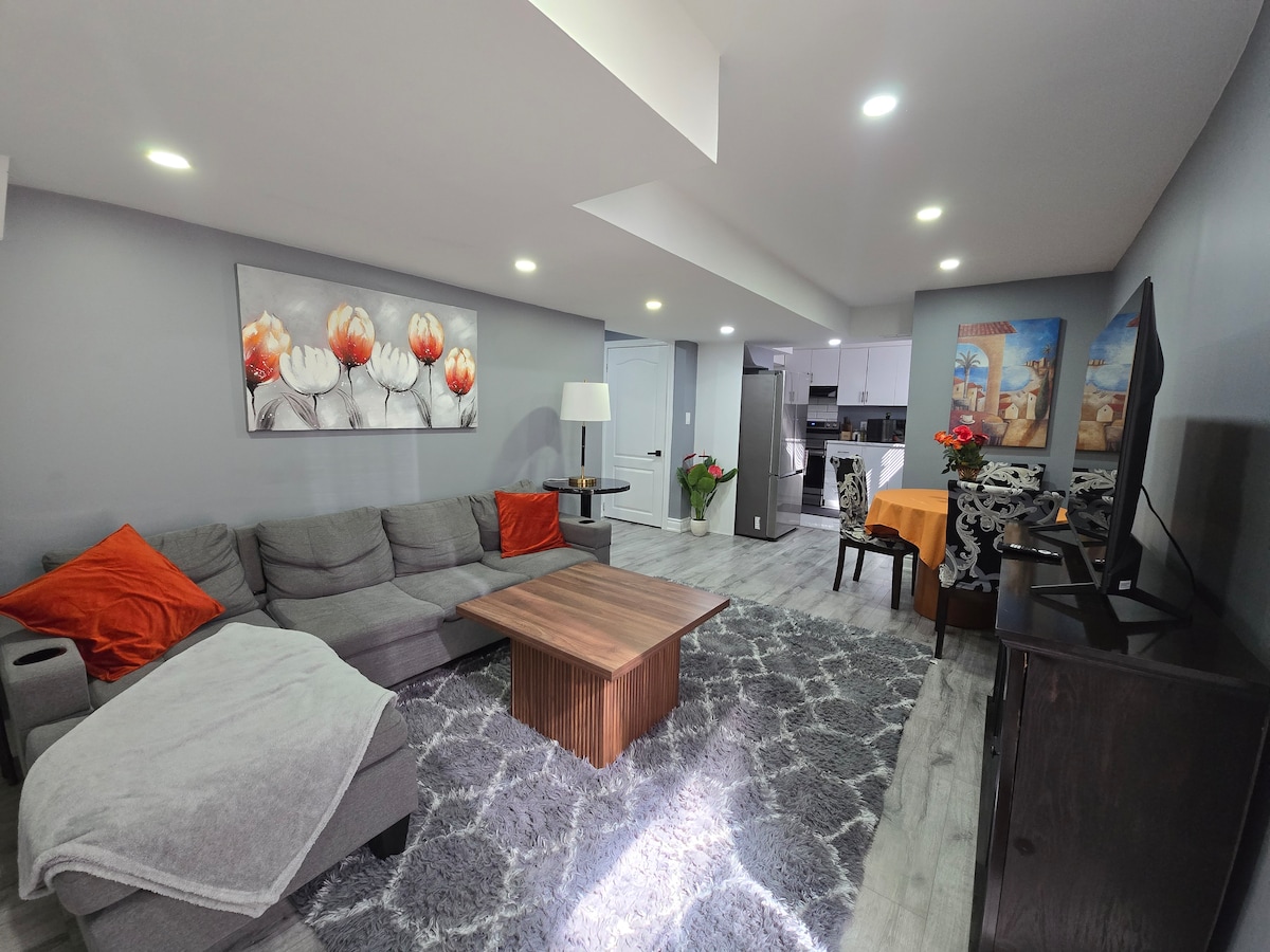 Welcome to our modern brand new 2BR, 2BA basement in Richmond Hill! Ideal for families or groups, it boasts a stylish living space, laundry area, and well-equipped kitchenette. The master bedroom features a fireplace and attached bathroom, while both bedrooms offer king-size beds and ample storage.Entertainment is provided with a TV and Wi-Fi-Netflix and Amazon prime,in a luxurious neighborhood, just a 5-minute walk to Yonge St and bus station for easy access . Experience comfort and convenience