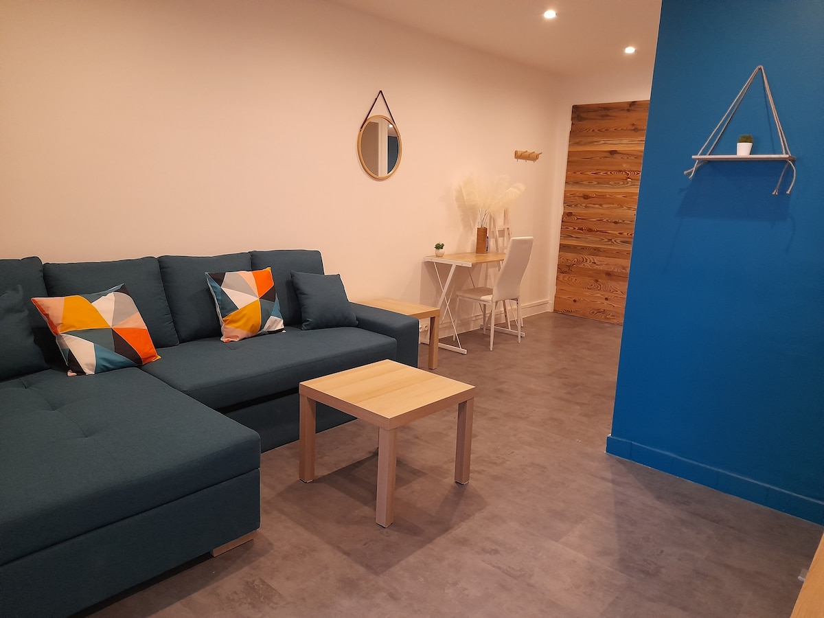 Maison indépendante,Loft Classement 3 étoiles*** Très lumineux, 59m2, au calme. Lit en 160x200 mezzanine( Literie récente,grand confort) Rideaux fermant la mezzanine pour plus d’intimité. Canapé convertible neuf, confortable dans le salon( possibilité de dormir en bas) Terrasse sans vis-à-vis,table et chaises. Climatisation ❄️central. Dans Le quartier de " Montchat " hôpitaux ,métro centre ville,tram direct gare et aéroport ,location vélo a proximité. Eurexpo a 20mn.