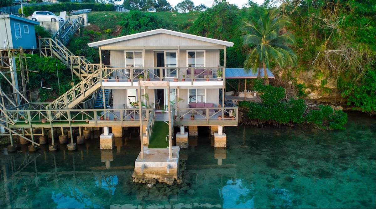 An ocean front home that is a 5-minute walk to downtown Neiafu and sits on a beautifully landscaped hill with stairs down to the ocean. There are 3 bedrooms each with a private on-suite. All rooms have a private entrance and a wrap-around deck with magnificent ocean views of Neiafu harbor. There is awesome snorkeling off our dock. If you booked a whale or diving tour, some tours can pick you up and drop you off from our wharf. We would love for you to come stay with us.