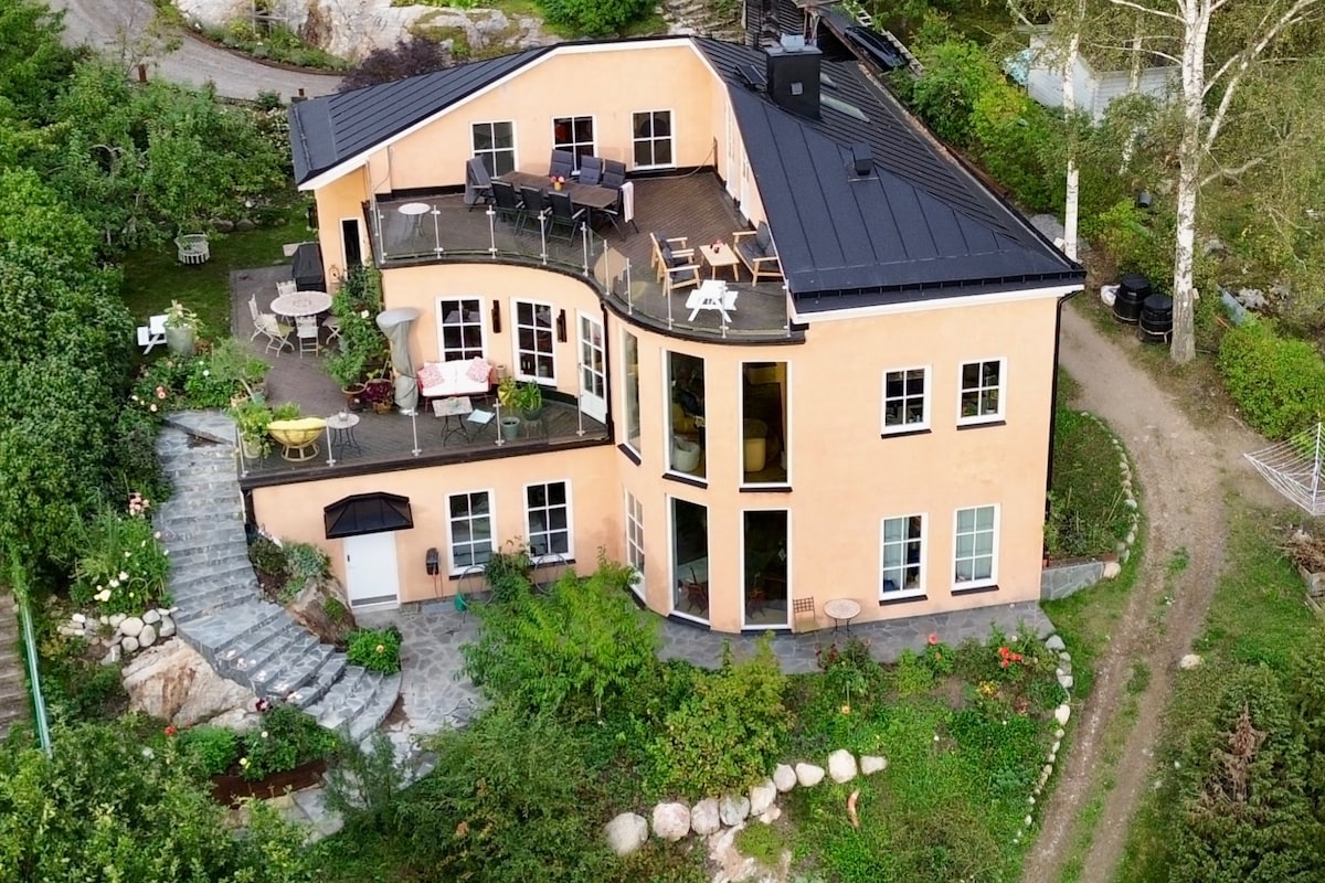 Utforska detta nybyggda fantastiska boende med magisk havsutsikt och kvällssol, ett trähus på 135 kvm på en ö i Stockholms mellanskärgård, Huvudhuset, med sina öppningsbara stora fönster längs hela havssidan, utstrålar en ljus och luftig atmosfär där naturen integreras med boendet. Här finns mycket sociala ytor och sovplats för 10 personer. Huset har en lång längsgående altan som bjuder på solstolar, soffplatser, stor kolgrill och har en nedre altan mot havet med badtunna.