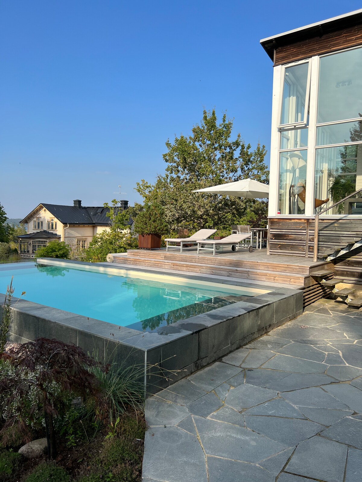 Welcome to our lovely villa on Resarö in the Stockholm archipelago. The house is privately situated with a great view and fantastic sunny position. Quiet location on a small cul-de-sac. Enjoy the proximity to the sea, the heated pool (may to september) and the wood-fired sauna. Close to bathing spots, Vaxholm and Stockholm. Walking distance to a grocery store and to bus/boat stop for travel to Stockholm/Vaxholm/archipelago. Distance to Stockholm approx. 30 min by car or 45 min by bus.