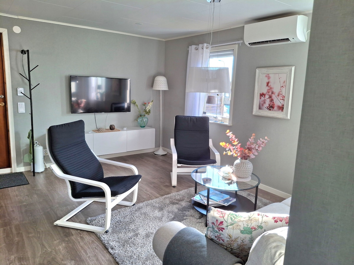 Charmig liten stuga som är ny renoverad med högstandard. 1200m från tågstationen och 300m från grönområde med motionsslinga. Sovrummet har AC ,en säng 140cm ,TV samt wifi. Fullt utrustat kök med induktion, micro, ugn och golv värme. Badrummet har tvättmaskin med inbyggd torktumlare toalett, handfat samt dusch och golvvärme. Huset är djur och rökfritt.