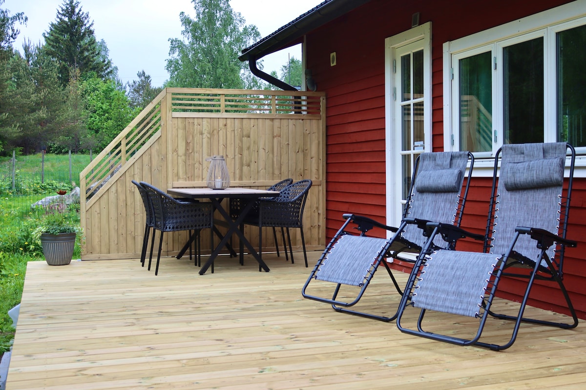 You like to glance out of the window, over a wild meadow leading to a lake? While having some buttered toast and your freshly brewed first coffee of the day? I guess you'll like it here. The little red house is about 90m away from of the Spannsjö, on which's shores my farm is the only real estate.Your little red house has everything you need, no matter the season: sleeping room with 4beds, living room, bathroom, fully functional kitchen and your own washing machine.Wifi is in the house.