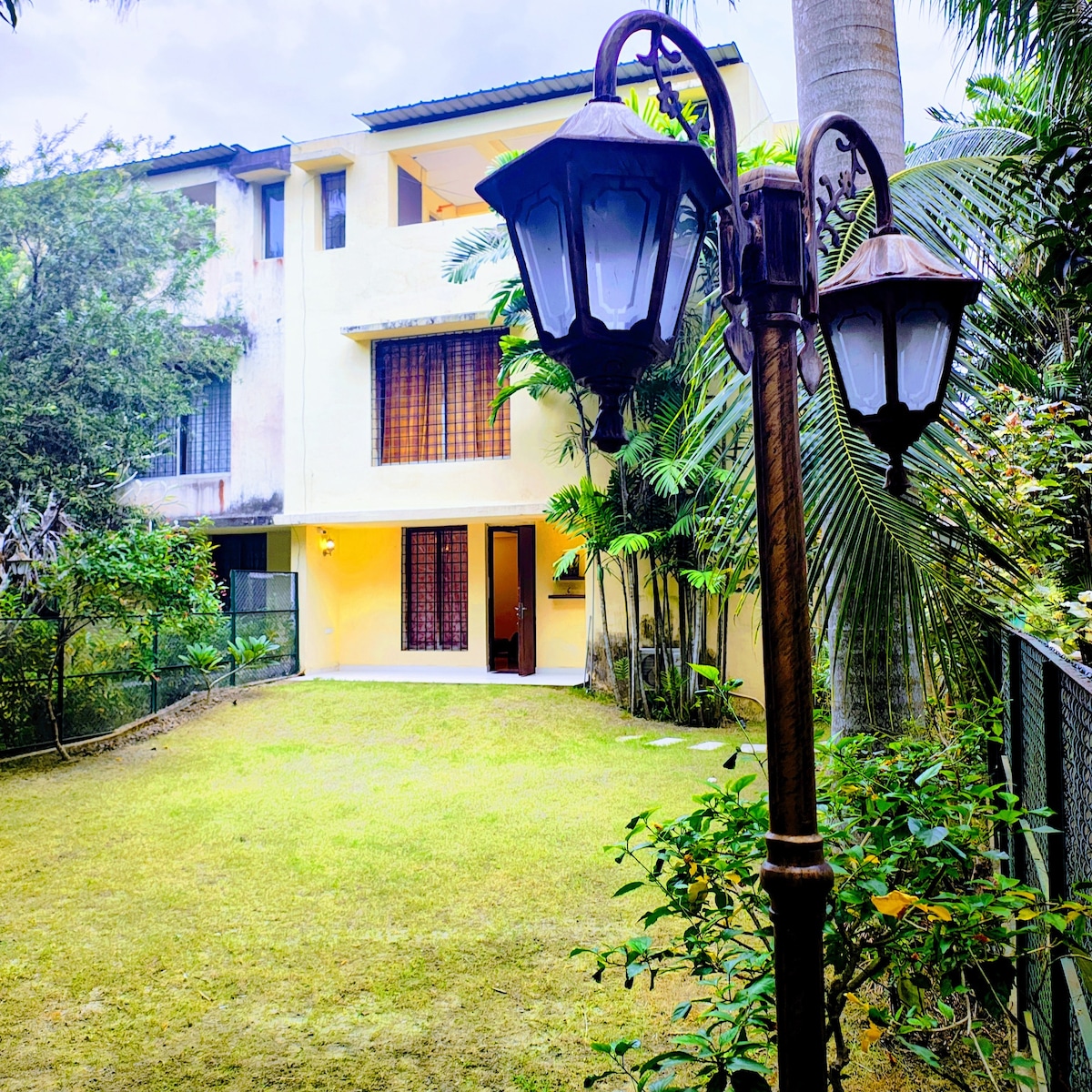 Bring the whole family to this great place with lots of room for fun. There is lovely terrace along with this bungalow. welcome to have cherished moments here...it has got a long room with bar cabinet and a giant TV . It has got another living room with TV and sound box . It has got gym equipments as well . You will love the serenity of the place . It has a worshiping room also for prayers .
