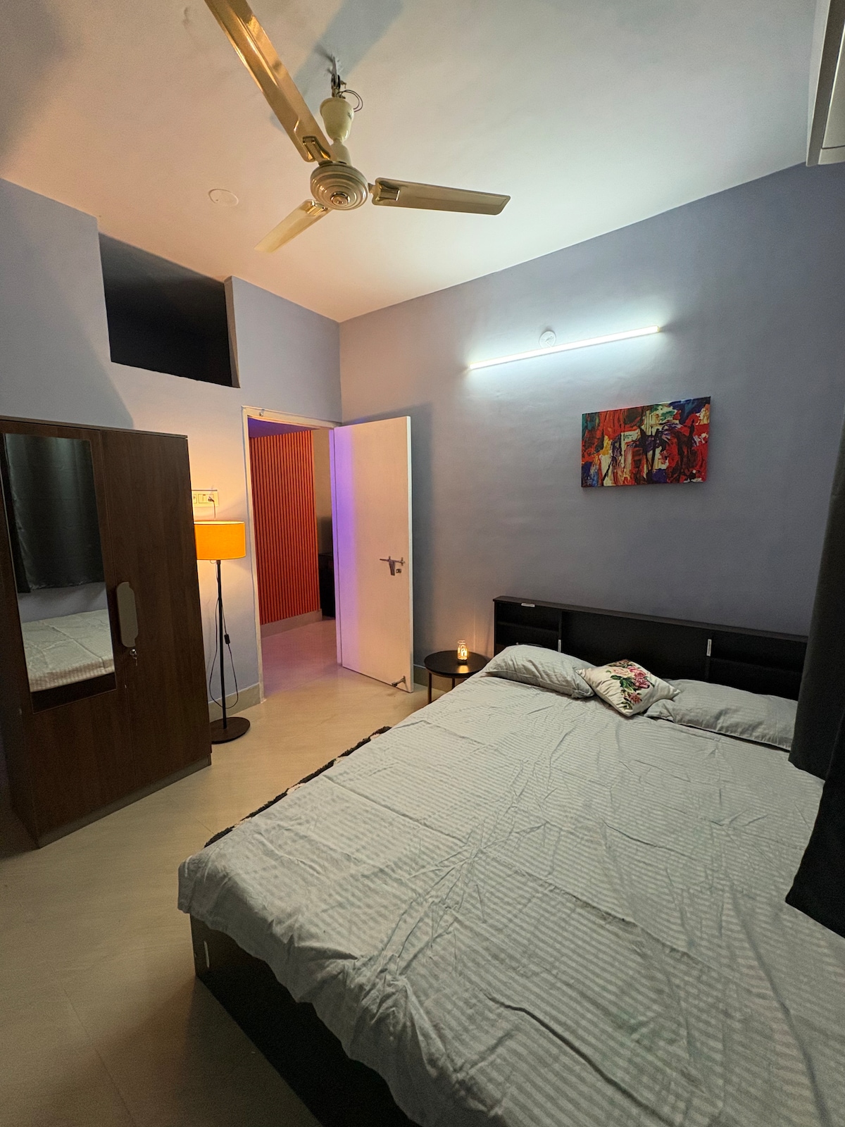 A tiny note from your host: - Legally licensed B&B - Sun-soaked serenity: 2nd Floor, 1BHK, breathable bliss - New Space , setting things up slowly - More exciting amenities coming soon . - No Parking Please note that, although a 2BHK, this listing is categorized as 1BHK, with one elegantly furnished bedroom and a second room serving as an expansive, open space for your relaxation. Enjoy this serene retreat, reserved exclusively for your comfort – no shared spaces, only tranquility.
