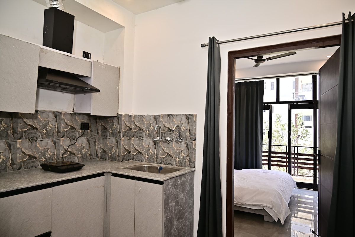 Welcome to Bliss Studio, a newly built 1BHK apartment in Tapovan, Rishikesh. With modern amenities and serene comfort, it offers free parking, Wi-Fi, and a fully functional lift. Guests can also enjoy a terrace with relaxing Ganges view. Located within 1-2 km of radius, there are attractions like Lakshman Jhula, Ram Jhula, Sai Ghat, Ganga Aarti etc. with some of the best cafes of Rishikesh, making it a perfect getaway with family and friends. We look forward to hosting you!