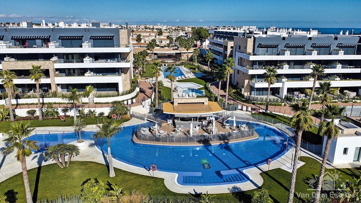 Zapraszamy do 5-gwiazdkowego, oszałamiającego kompleksu wakacyjnego w kurorcie Playa Flamenca - Orihuela Costa. Designerski styl mieszkania z tarasem sprawi, że poczujesz ekskluzywny klimat wakacyjny. W samym kompleksie mieści się kilka basenów 2 podgrzewane i 3 nie. Kilka dla dzieci, Jacuzzi, sauna, siłownia z przepięknym sztucznym wodospadem i bar w basenie. Dla wielbicieli zakupów blisko największe centrum handlowe w okolicy – La Zenia, kręgielnie, sale gier, plac zabaw oraz restauracje.
