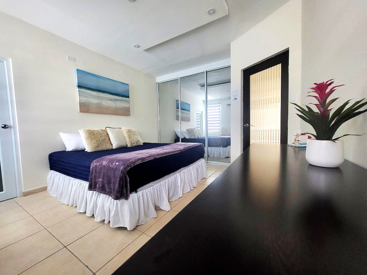 Two-bedroom cozy house with immediate access to the coast. It has a living room, smart TV (no subscriptions included) bathroom, dining room, equipped kitchen, water heater, air conditioning in both bedrooms, and parking. Serene neighborhood, great for clearing out. 5 minutes away from Balneario Puerto Nuevo, and close to beaches, water springs and other places of interest. Enjoy quick access to beaches, supermarkets, restaurants and pharmacies.