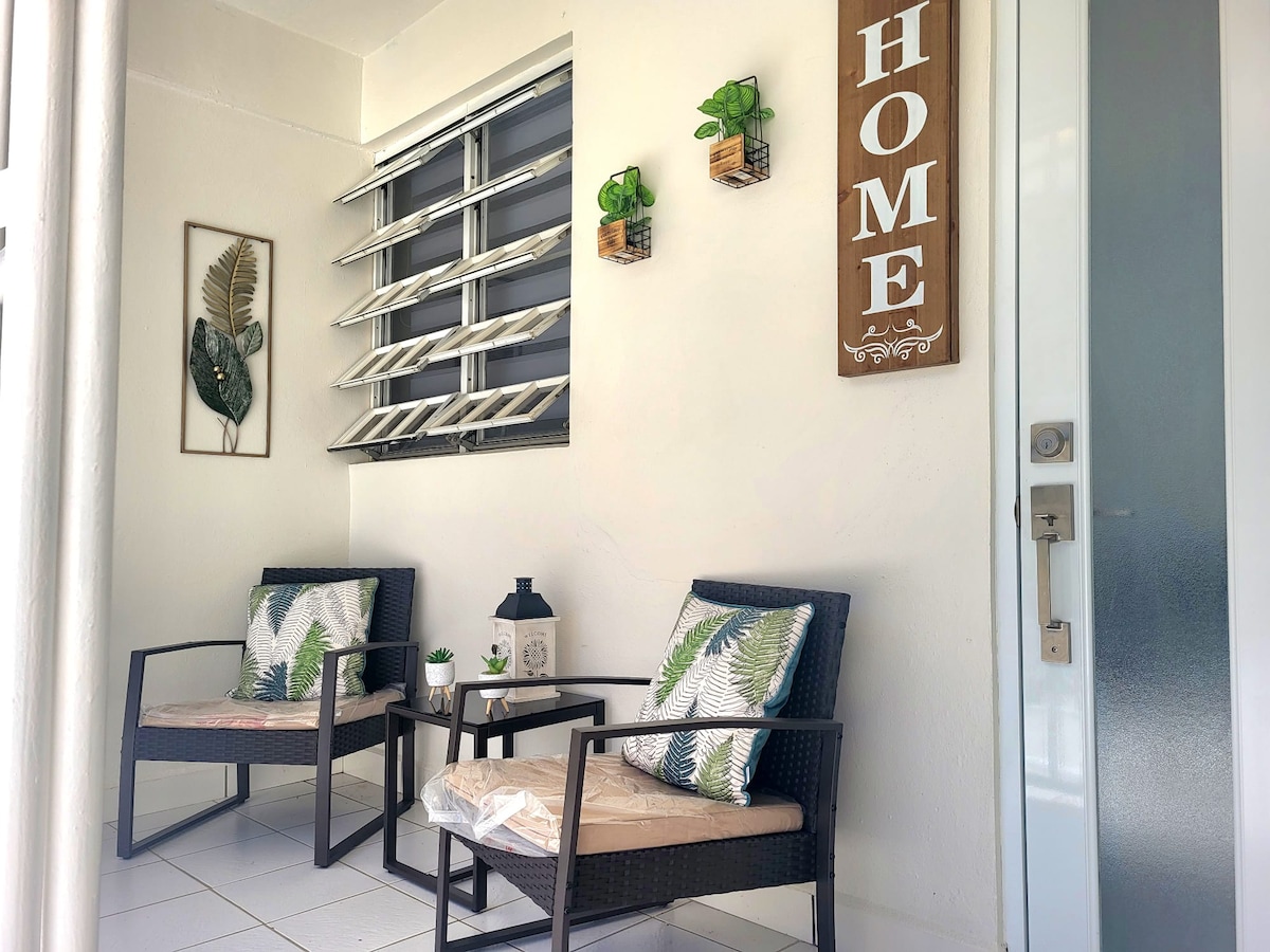 Privacy, comfort, and luxury await you in this beautiful first-floor private home. It features 2 bedrooms, a spacious living room, a fully equipped kitchen, dining area, balcony, parking, laundry, Wi-Fi, and a spectacular terrace with a jacuzzi. Just 10 minutes from both the countryside and the beach, its central location between Vega Baja, Morovis, and Manatí makes it ideal for exploring the area. Perfect for a romantic getaway or for sharing with family and friends.