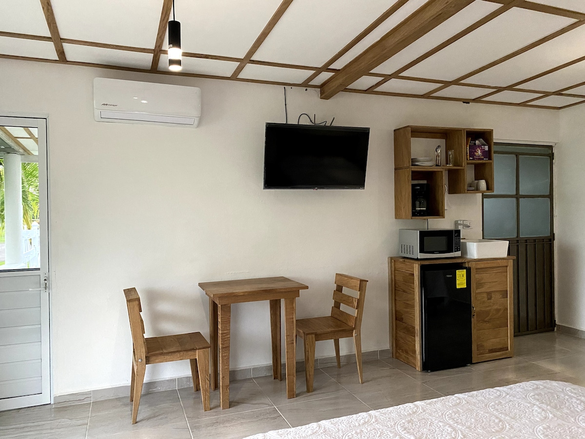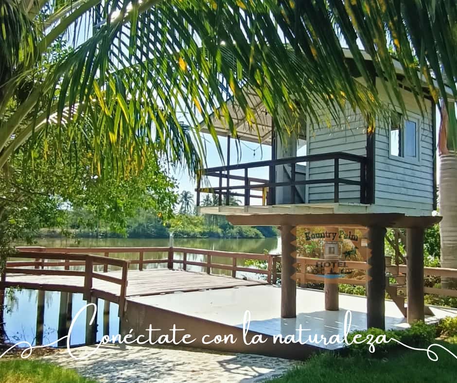 Nuestro bungalow se encuentra en un área con vista al lago donde puedes disfrutar de un espacio amplio para relajarte en la naturaleza con una buena taza de café por las mañanas; recorrer las instalaciones al aire libre para gozar el avistamiento de aves e incluso visitar la playa a la que se puede llegar en 10 minutos con nuestras bicicletas o en 5 minutos en vehículo. Y también contamos con asador en una terraza privada para que pases una estancia maravillosa e inolvidable con tu familia.