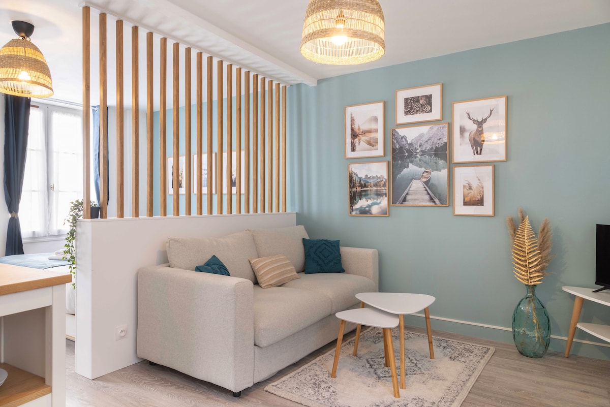 ✨ Studio de 28 m² rénové avec soin, situé au 2ᵉ étage d’un immeuble ancien en plein centre-ville de Romorantin. Tout confort : wifi fibre, linge fourni, cuisine équipée, coin nuit cosy et salle d’eau. Idéal pour découvrir la Sologne, visiter les châteaux de Cheverny/Chambord (30 min) ou le zoo de Beauval (40 min). Parfait pour un séjour en couple, entre amis ou pour un voyageur professionnel. ⚠️ Accès uniquement par escalier en colimaçon.