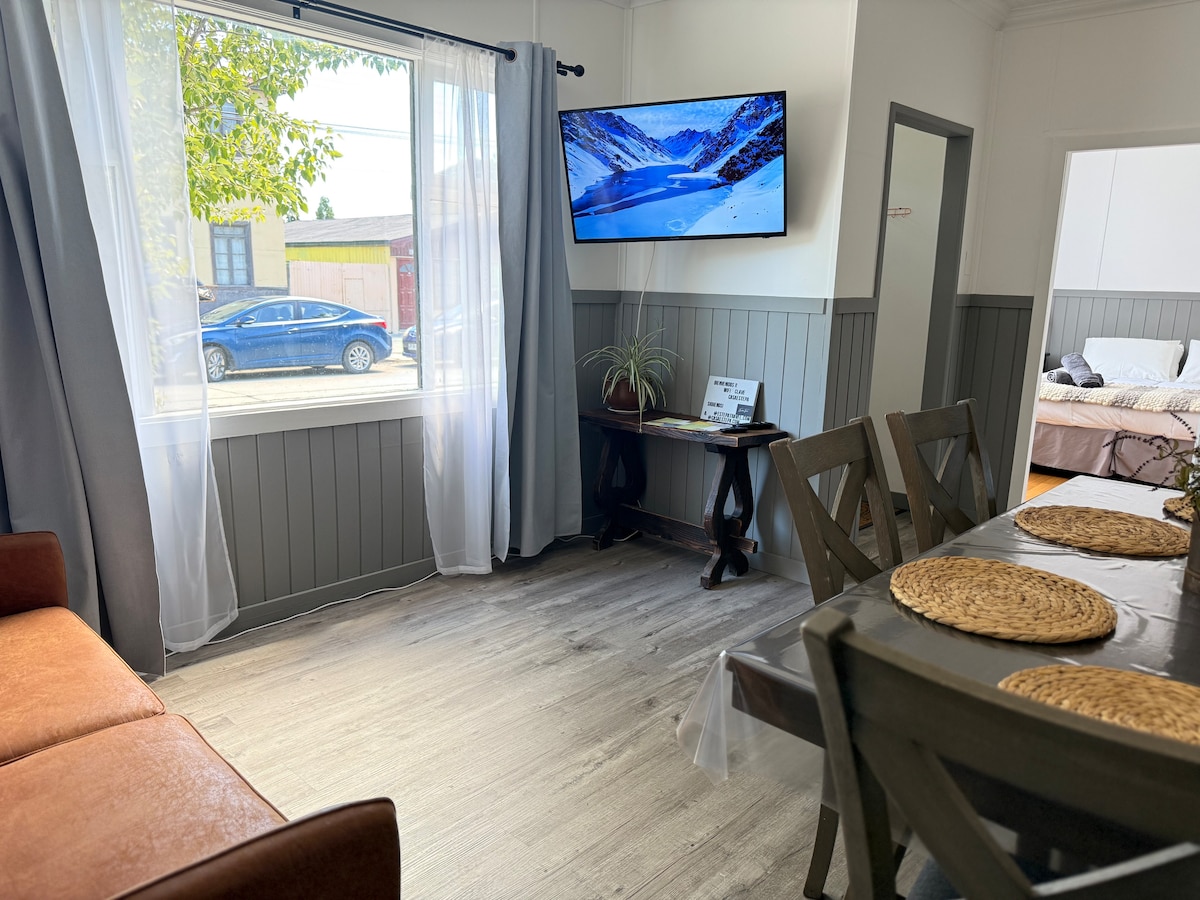 Departamento nuevo ubicado a las afueras de Puerto Natales, en un entorno tranquilo, seguro, con estacionamiento privado y vista al cerro Dorotea. Habitación con cama Queen,baño en suite, amenities y toallas, Direct TV y Wi Fi. Cocina full equipada, área de estar y terraza Hot Tub es de uso exclusivo de nuestros huéspedes, lo pueden usar por un valor adicional de $20.000 por hasta 5 horas, entre las 10:00 am y las 21:00 hrs. Asesoría para planificar tu estadía y transporte opcional.