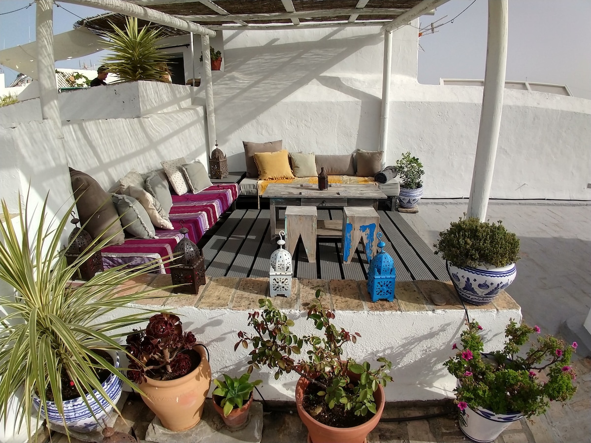 Casa Pétalos is a 400-year-old courtyard house, located in a quiet street in the old town of Vejer, a few minutes' walk from the center, the Plaza de España. From the terrace you have a wonderful view of the Strait of Gibraltar to Morocco. Fully equipped kitchen, large living area, study, lots of storage space. Arrival by car possible, free parking spaces nearby. Your casita to discover Vejer, the beaches of the Costa de la Luz and the beautiful province of Cadiz.