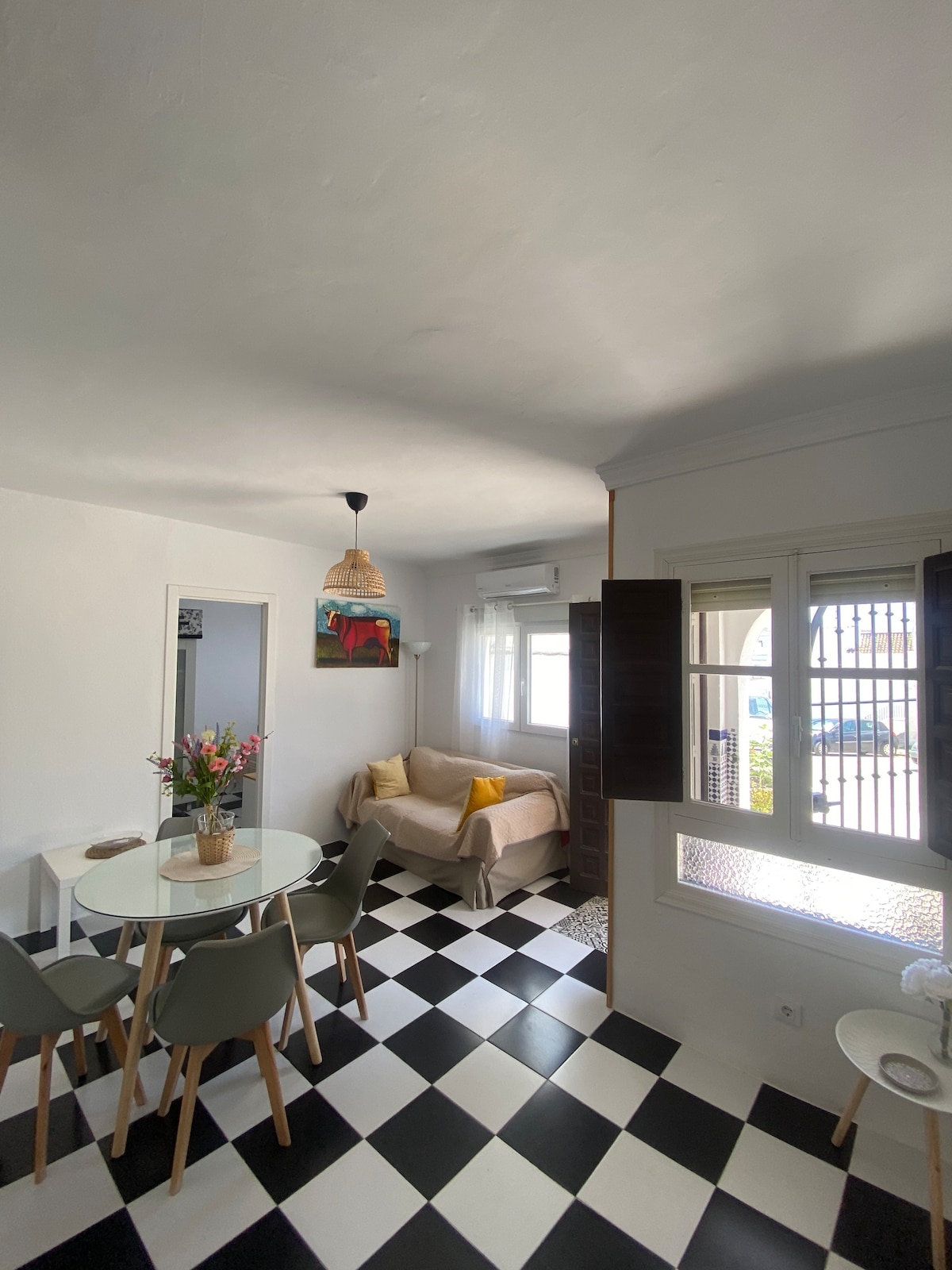 Accesible apartamento a pie de calle, de 60m2, recién reformado , ubicado en Vejer de la Frontera. -Dormitorio con TV, armario y cama de 150cm. -Cocina y baño completamente equipados. -Salón comedor con sofá cama para dos personas. -Patio privado con lavadora, así como mesa y sillas para que descanses de tu viaje. El alquiler incluye sábanas, toallas, suministros de cocina (así como café y té), y suministros del baño. También tendrás disponible una sombrilla y nevera para la playa.