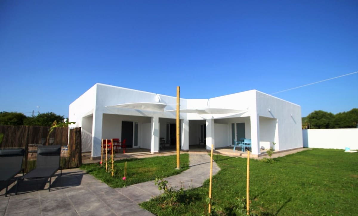 Beautiful villa near the beach in the Roche, Conil (Cadiz) We rent all year round (for fortnights in July and August) and can accommodate up to 8 people. There is WiFi Internet and Netflix Plus, 2 smart TVs, one 70'' screen. The house, 150 m2 (200 including terraces) and 600 m2 of garden, is a typical Andalusian tile construction totally and perfectly equipped and decorated with style, for maximum comfort and enjoyment. It is only 50 meters from the beach. So close that you can go barefoot.