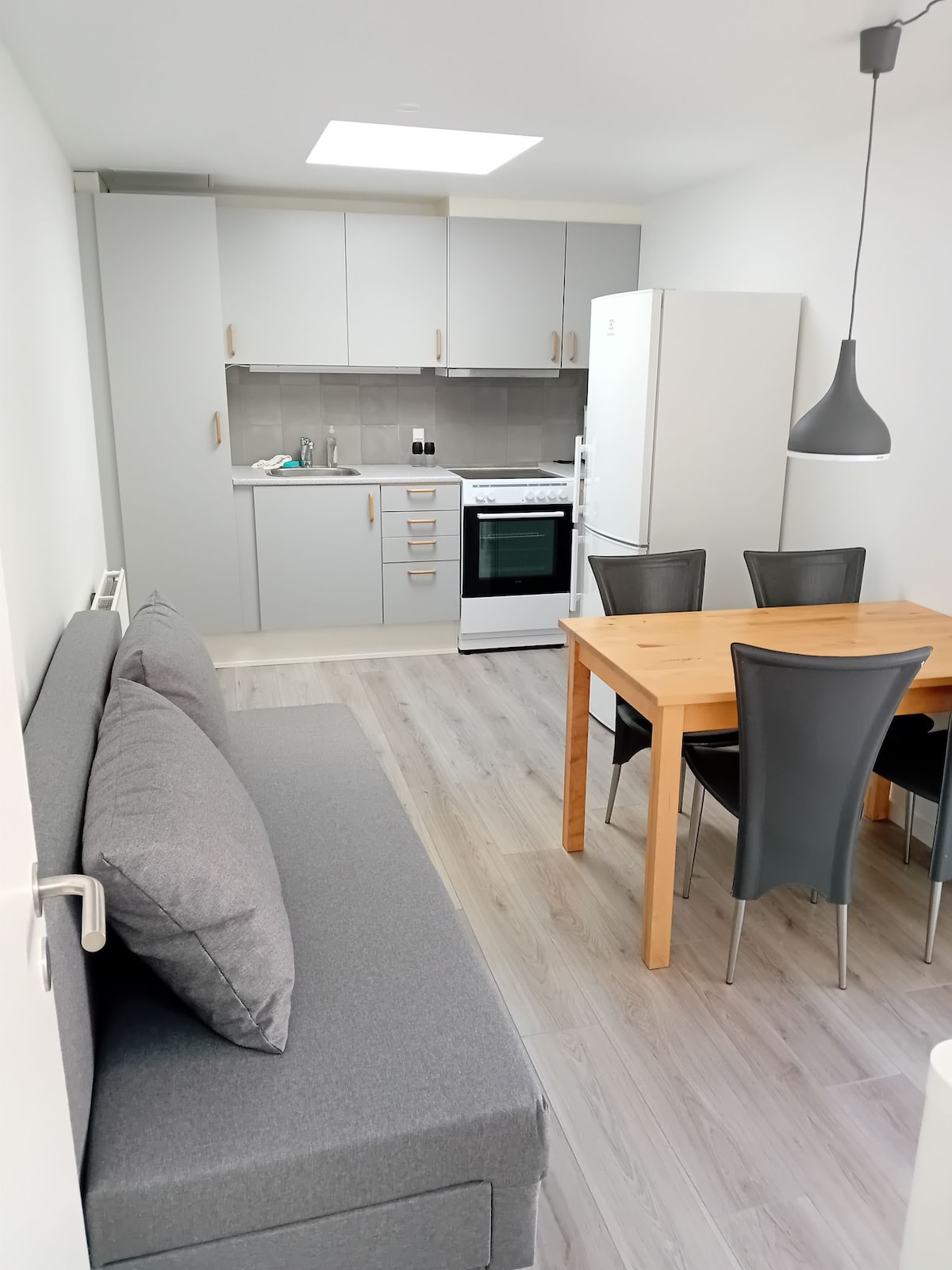 Cozy apartment on the first floor with a private entrance, just 10 minutes from the E45 highway. All the essentials for daily life are provided. Always freshly washed bed linen, cleaned with Neutral Sensitive Skin – a hypoallergenic detergent. Various cozy blankets, cushions, a daybed, and two desks for work or study. You are more than welcome! 😊