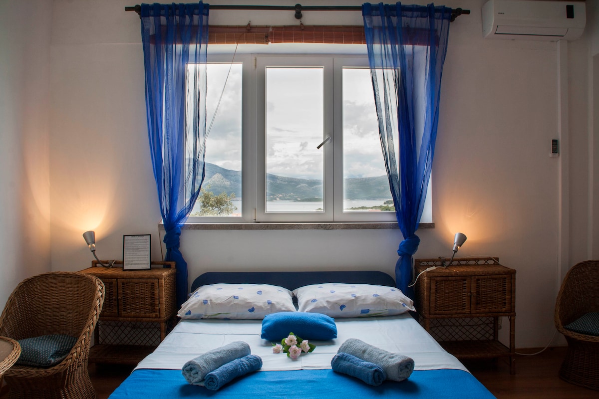 This is a modern 2 bedroom apartment with 2 small terraces with amazing sea views and views of the old town.Located minutes away from all the main events of Korcula.Great base for your stay.Comfy,Fully equipped.Both bedrooms have their own air conditioning.This spacious apartment is suitable for one to four persons.Either a family or two couples.It’s located on the second floor of this typical mediterranean house.There is a private garage for parking but you have to contact me in advance.