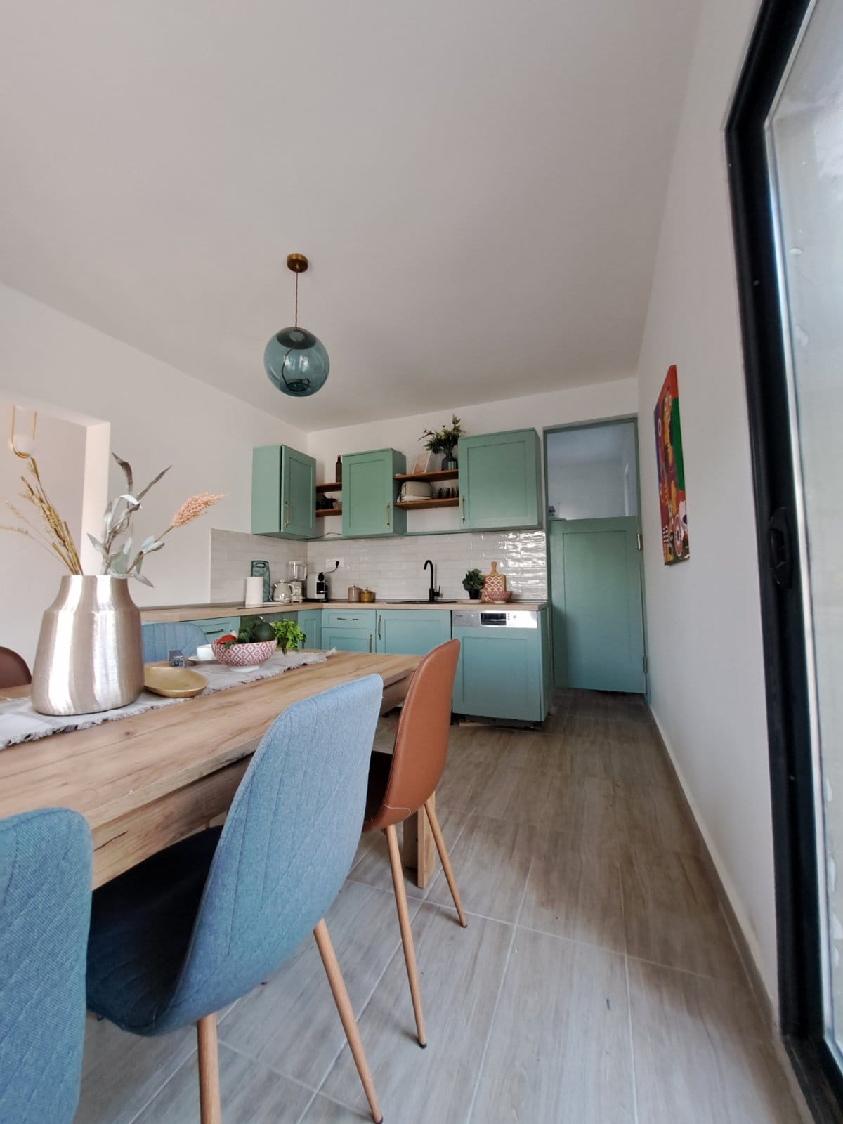 Our one bedroom apartment comfortably fits four and is centrally located on a quiet street,just 300m from the beach. Apt has TV,Wi-Fi, A/C,washing machine, hair dryer, towels. There is a swimming pool and barbecue. Free parking. Se offer our guests the organization of transfers from the airport and car rental