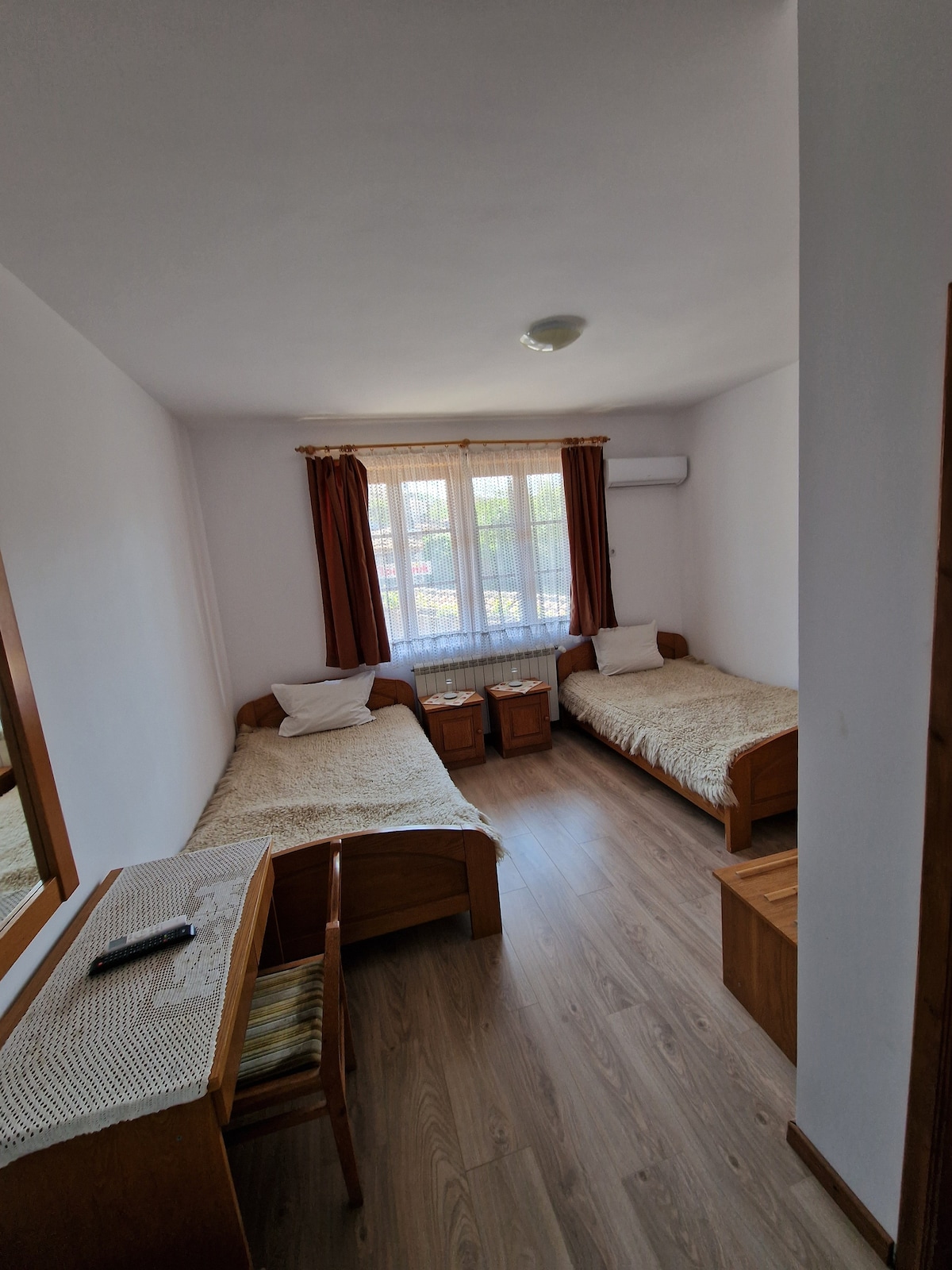 Апартамент на приземен етаж в къща за гости с двойна спалня и разтегателен диван в хола.На ваше разположение има баня и тоалетна прилежаща към спалнята и отделна тоалетна,кухнята разполага с фурна и аспиратор,съдомиялна,микровълнова печка,кана за топла вода и посуда за хранене и готвене.Три телевизора намиращи се в холовата част, кухненска част и спалня.Къщата разполага с дворно място,в което има зона за барбекю и достъп до сауна,която се ползва при допълнително заплащане.