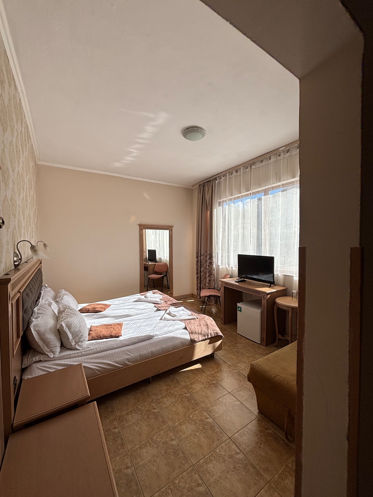 Welcome to Family Hotel Arbanashka sreshta! Nestled atop the enchanting Arbanasi Village, our hotel offers a breathtaking panorama of the surrounding nature, with stunning views of the majestic Tsarevets Fortress and Trapezitsa Fortress. Our family hotel offers comfort, traditional bulgarian atmosphere and cuisine, spectacular views and a real idyll and tranquility.