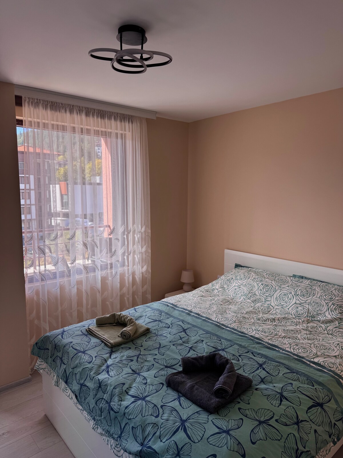 Влизайки в нашия уютен и модерен апартамент, ще се почувствате като вкъщи. Изцяло обзаведен с комфортни мебели и съвременни удобства, които ще осигурят приятна и релаксираща атмосфера по време на престоя ви. Идеално разположен в близост до планината и на няколко минутки от центъра на града. В съседство е и разположен спа център. *Въпреки липсата на климатик, температурата в апартамента е приятна и комфортна. Резервирайте сега и се насладете на спокойствие и удобство в перфектна хармония.