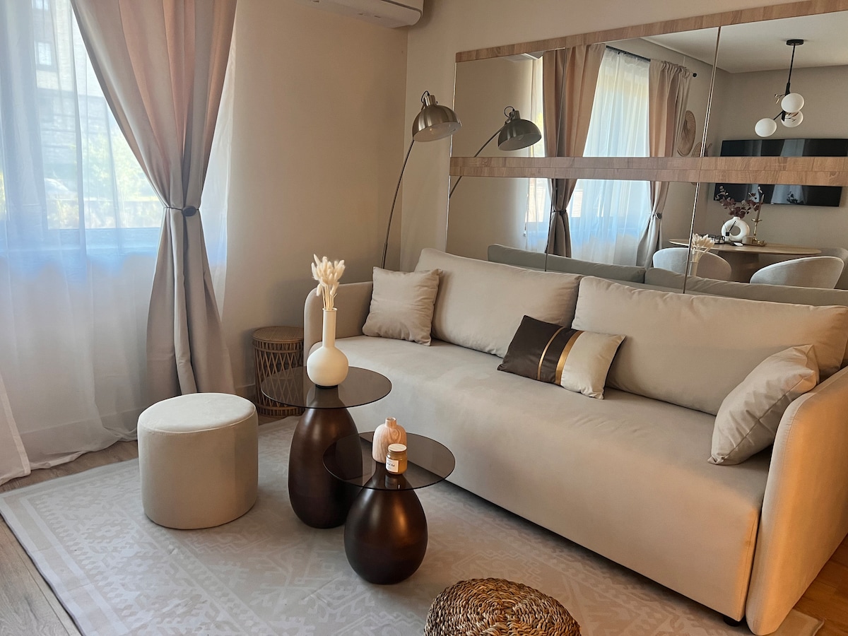 Welcome to our brand new luxury apartment in Bansko, nestled amidst the breathtaking Pirin mountain range. Immerse yourself in a unique cave-inspired retreat adorned with rustic stones and warm wood accents. The double bed promises ultimate comfort, while hidden LED lights create a magical ambiance. Experience a seamless blend of nature and opulence, with panoramic views of Bansko's ski resort. Your mountain escape awaits, where every detail whispers tranquility and elegance