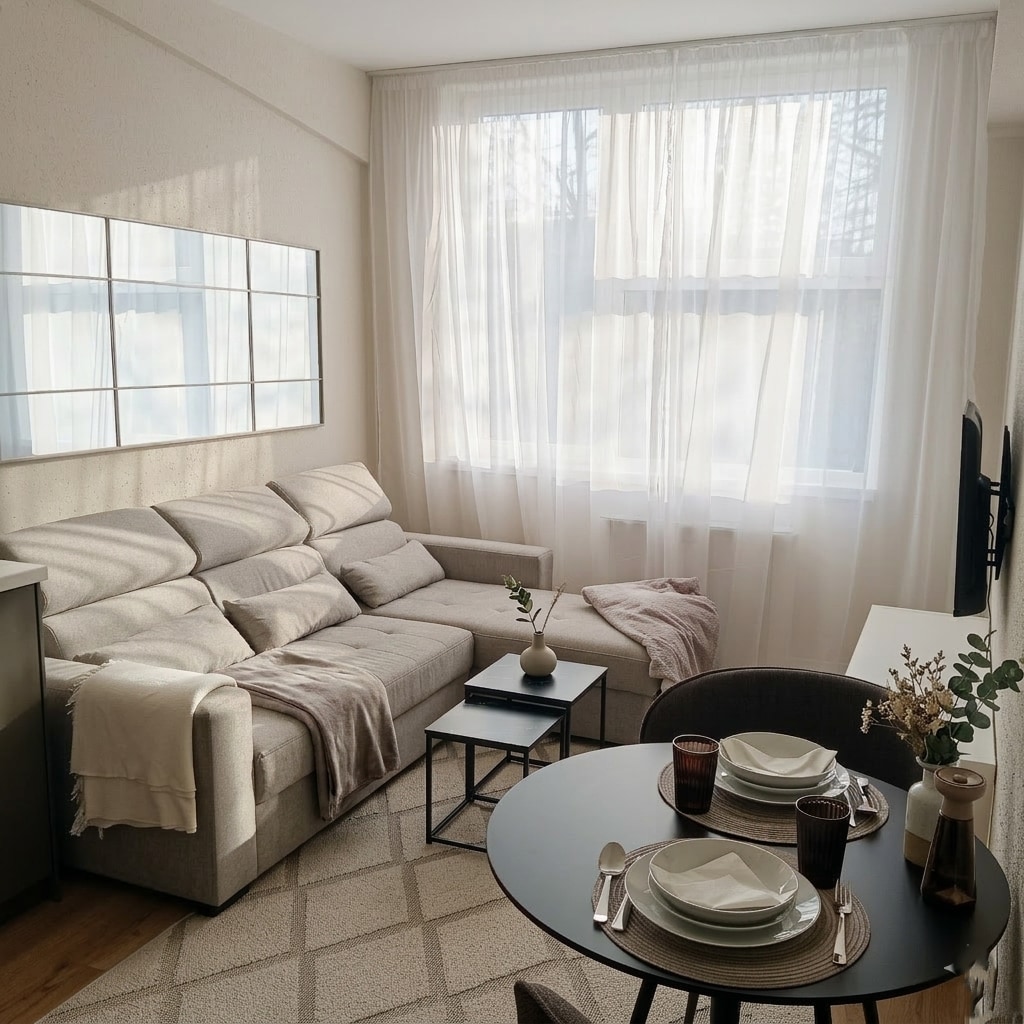 Your new stylish apartment offers comfort stay for up to 2 persons. It is located in a new estate just minutes within downtown. Place is fully furnished (kitchen appliances, wi-fi, Antik Smart TV, etc.) and is ready for your stay. Free parking is provided in designated underground space. Safety of the property and guests is provided by private security company.