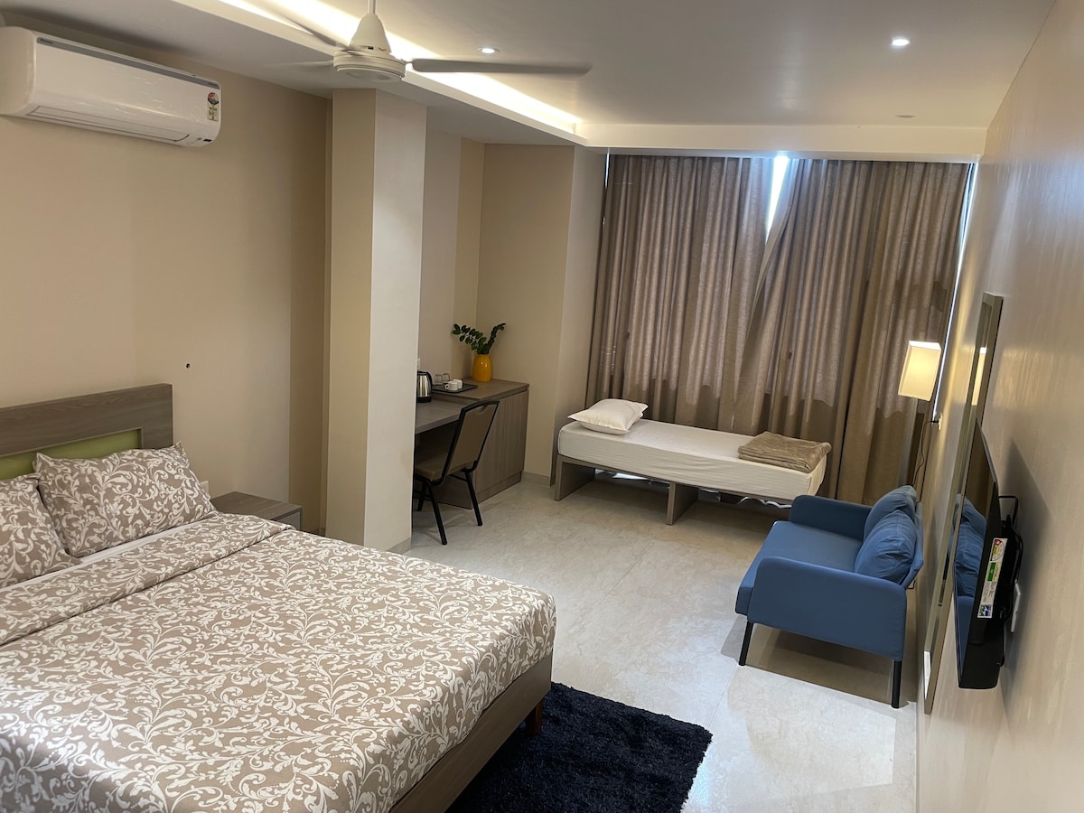 Welcome to your Fort Square Apartments. This modern, stylish space offers the perfect blend of comfort and convenience. Relax in the comfortable bedroom, enjoy meals in the well-equipped kitchen, and unwind in the charming living area. With a TV for entertainment, a hot water shower, and all the essential amenities, it’s designed for a perfect stay. Located in a peaceful area yet close to the city's main attractions, it’s ideal for both short and long stays.