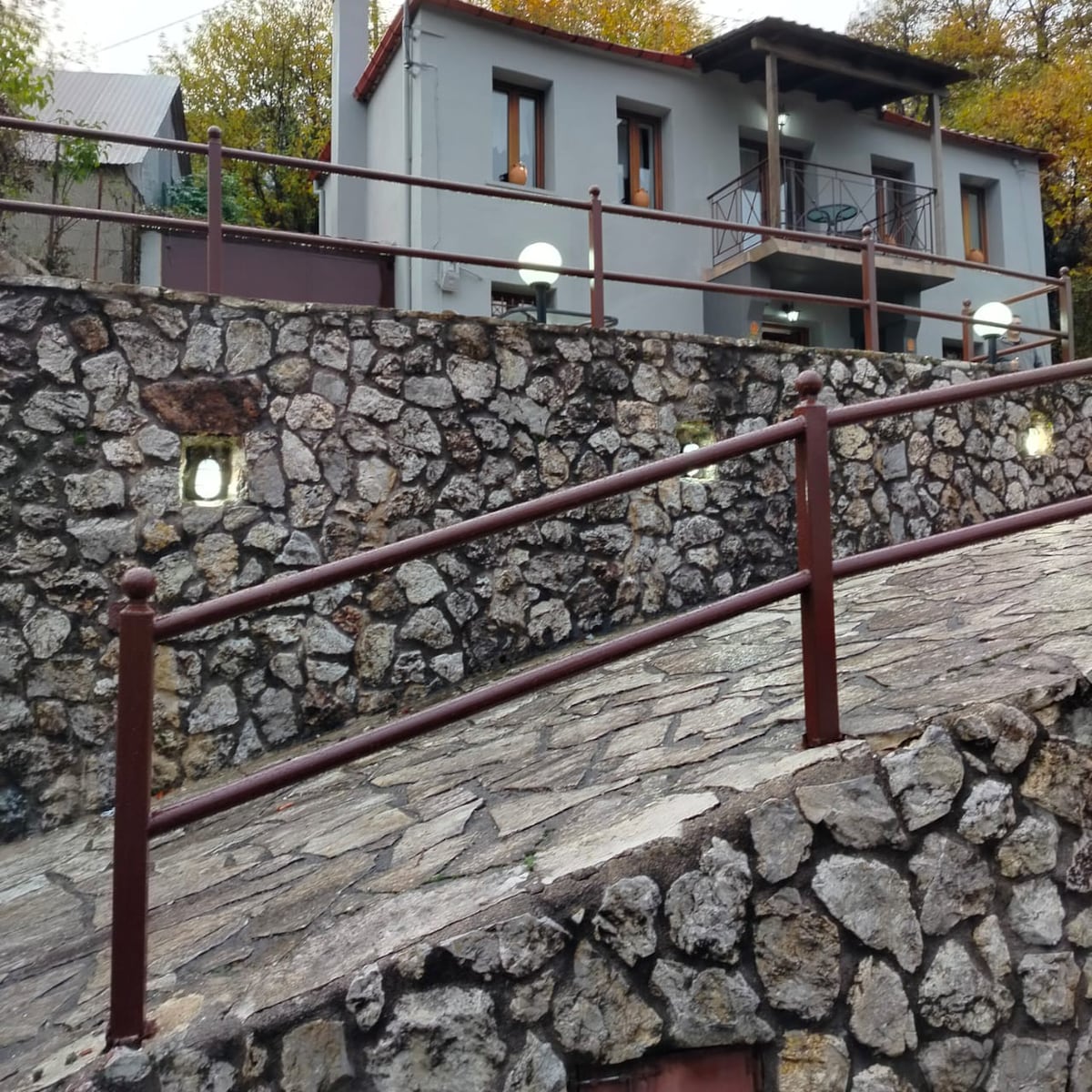 Σε ένα χώρο δέκα στρεμμάτων με οπωροφόρα δέντρα πάνω σε ένα λόφο με πανοραμική θέα βρίσκεται μία υπερυψωμένη πετρόχτιστη νεόδμητη αυτόνομη βίλα πενήντα πέντε τμ, που απέχει από το κέντρο του Καρπενησίου μόλις εφτακόσια μέτρα. Διαθέτει μία κρεβατοκάμαρα, μπάνιο με μπανιέρα, κουζίνα, τραπεζαρία και σαλόνι με τζάκι καθώς και βεράντες. Είναι εφοδιασμένη με όλες τις ανέσεις συμπεριλαμβανομένης αυτόνομης θέρμανσης και ιδιωτικού πάρκινγκ. Δύναται να φιλοξενήσει έως τρεις ενήλικες.
