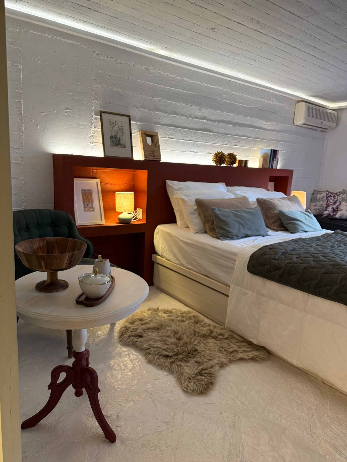 Welcome to La maison particulière Evritania — a renovated stone cellar nestled in the heart of nature. With a cozy height of 2 meters, earth-toned decor, this hideaway offers warmth and serenity Enjoy views of the fir mountains from your terrace and unwind in the outdoor lounge with built-in stone sofas and a wood-burning stove — perfect for romantic evenings under the stars. Located in Evrytania, at 780 meters altitude and near a peaceful stream this space invites you to reconnect with nature