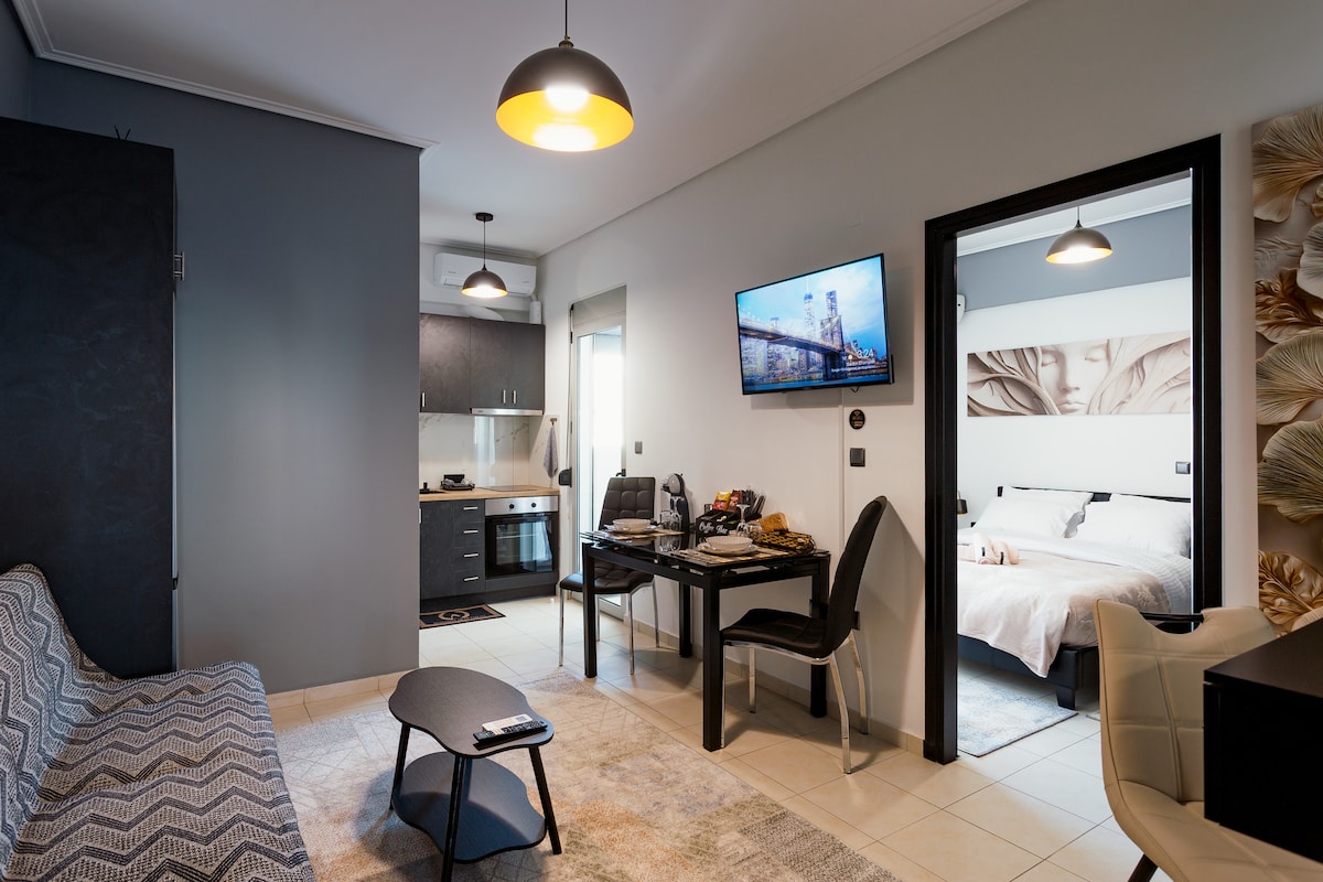 Απολαύστε μια εμπειρία διαμονης σε ένα πλήρως εξοπλισμένο στούντιο ενός υπνοδωματίου με ιδιωτικό μπαλκόνι. Το διαμέρισμα βρίσκεται στο κέντρο του Αγρινίου (1' με τα πόδια από την κεντρική πλατεία) πολύ κοντά σε εμπορικά καταστήματα, εστιατόρια και διασκέδαση. Φούρνος και σουπερ μάρκετ σε απόσταση 1' με τα πόδια. Επίσης στα 2' λεπτά βρίσκεται το Δημοτικό πάρκινγκ Αγρινίου. Μια ιδανική τοποθεσία για επισκέπτες που θέλουν να εξερευνήσουν την πόλη και όχι μόνο.