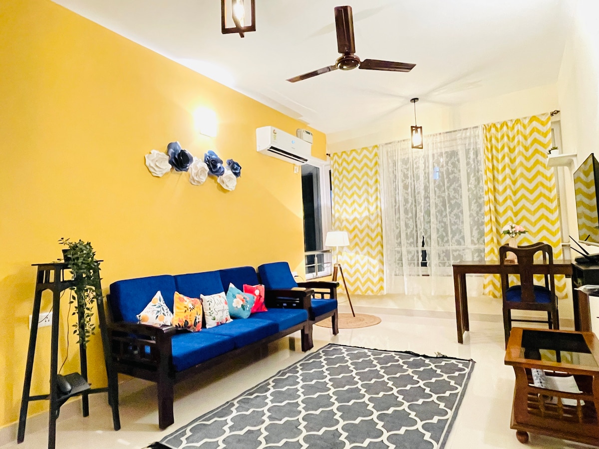 Kick back and relax in this calm, stylish space designed for 2 with all modern amenities to easy your holiday. Located just 8 min from Goa's Dabolim airport, the apartment nests in a residential society with 24 hours security. 3 beaches are in a radius of a 15 min drive. Amenities provided are: 2 split AC each in Bedroom and Living Room, LED TV 42 inch, Kent RO, Fridge, Bosh Fully Washing Machine, Hair Dryer, Tea Kettle, Toaster, Electric Rice Cooker, Induction Stove, Crockery and a geyser.
