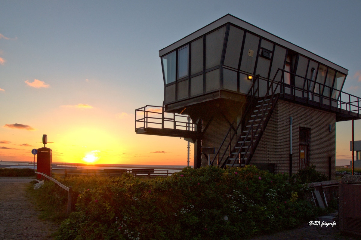 Schakel een tandje terug in deze unieke, rustgevende accommodatie. Het appartement aan zee is rustig, geeft energie en heeft een mooi uitzicht. Vanaf de keuken en woonkamer met open haard zie je de zee en de kustlijn. En vanaf de duinkamer waar je kan slapen is er uitzicht over de duinen waar vaak herten lopen. De badkamer is eenvoudig en netjes. Op de vide kan met meer mensen geslapen worden. Beneden is er toegang tot het zwembad met sauna.